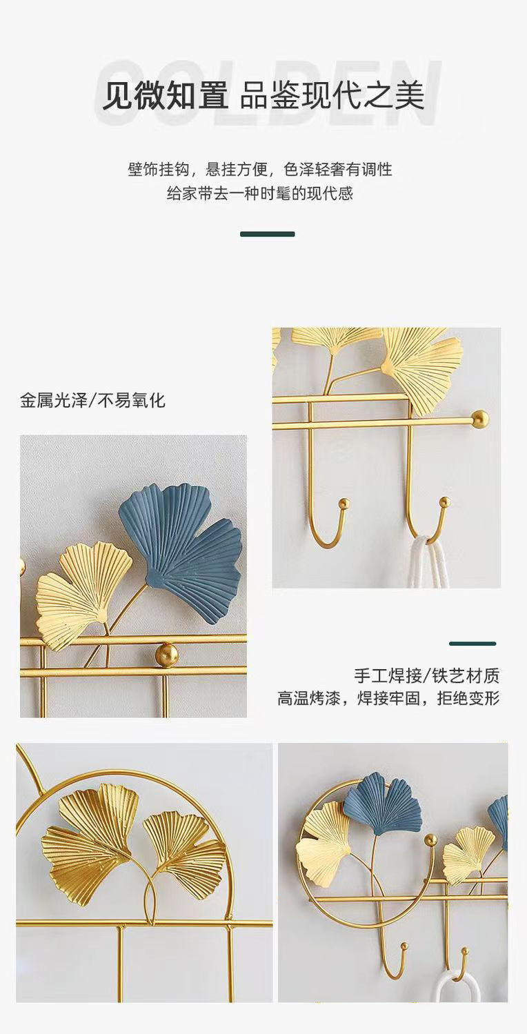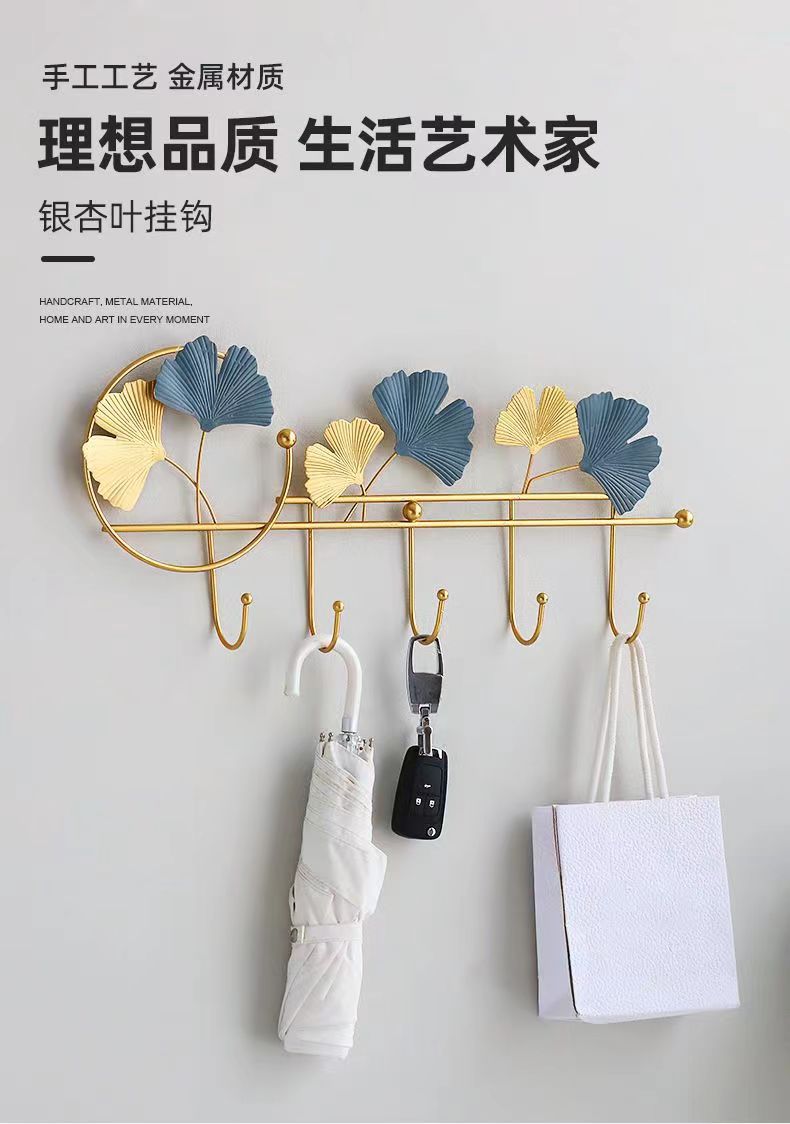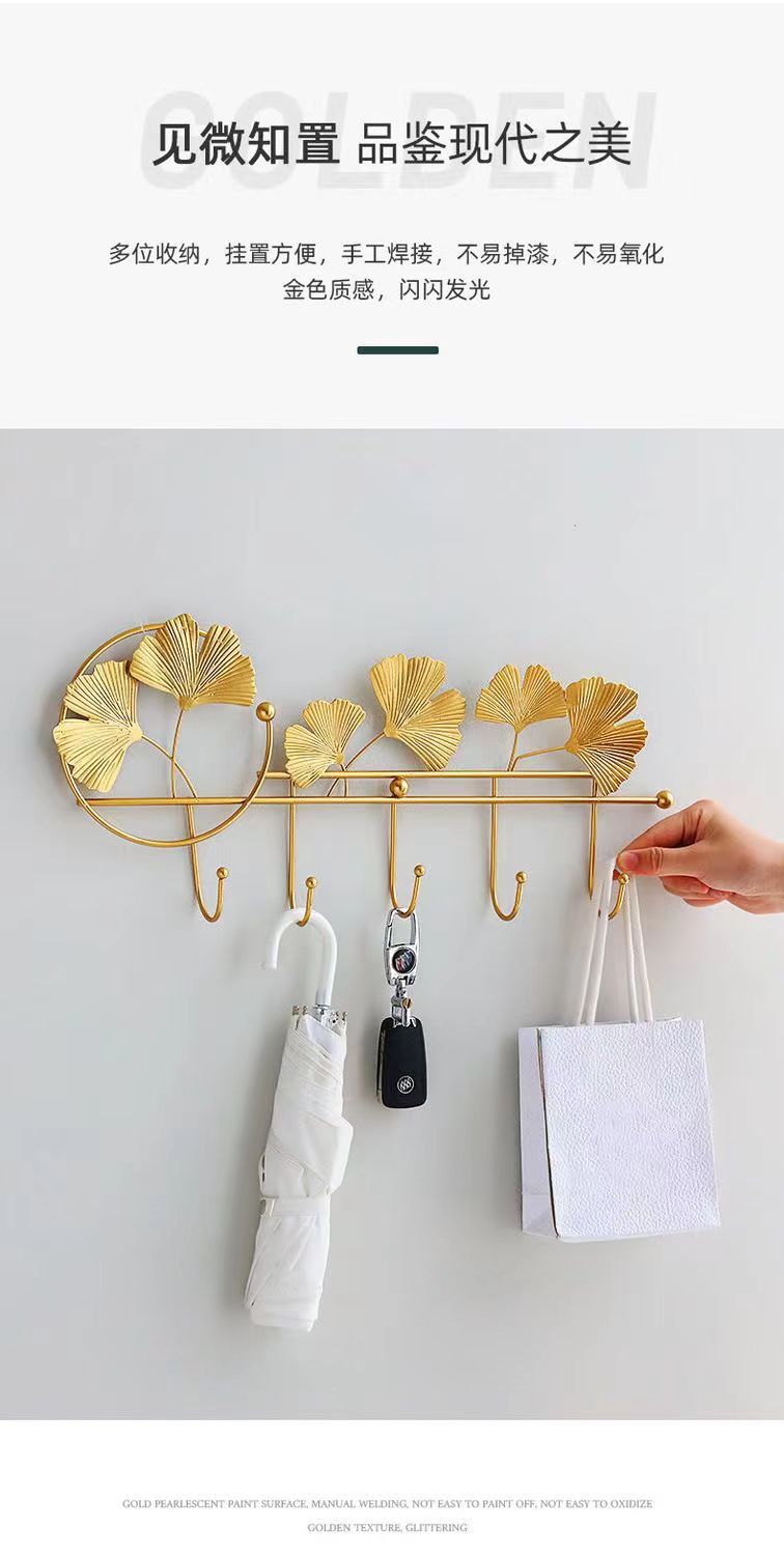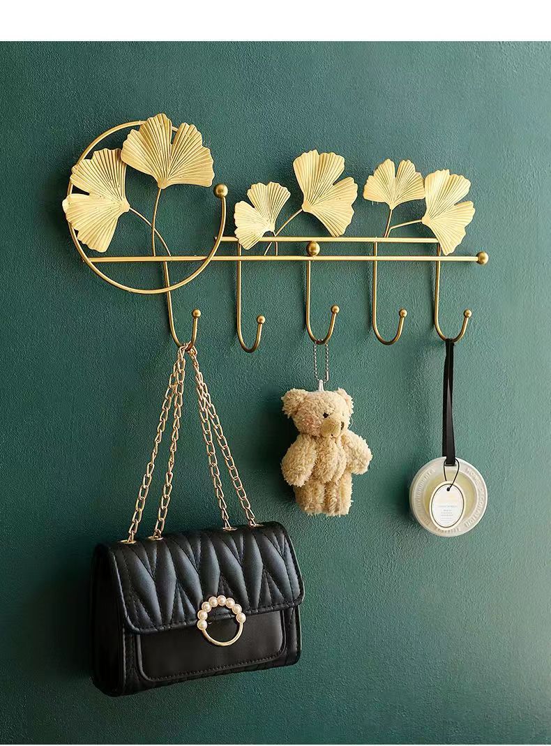 玄関ホールの装飾用の列に沿った軽くて豪華なイチョウの葉のフック、壁掛けの洋服フック、壁に穴を開けずにコートラック