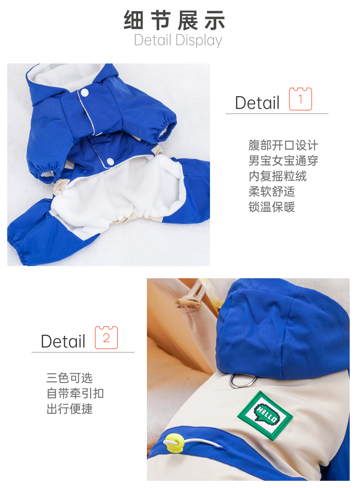 秋冬季新款户外探途防风四脚衣宠物服装狗狗衣服泰迪猫咪衣服