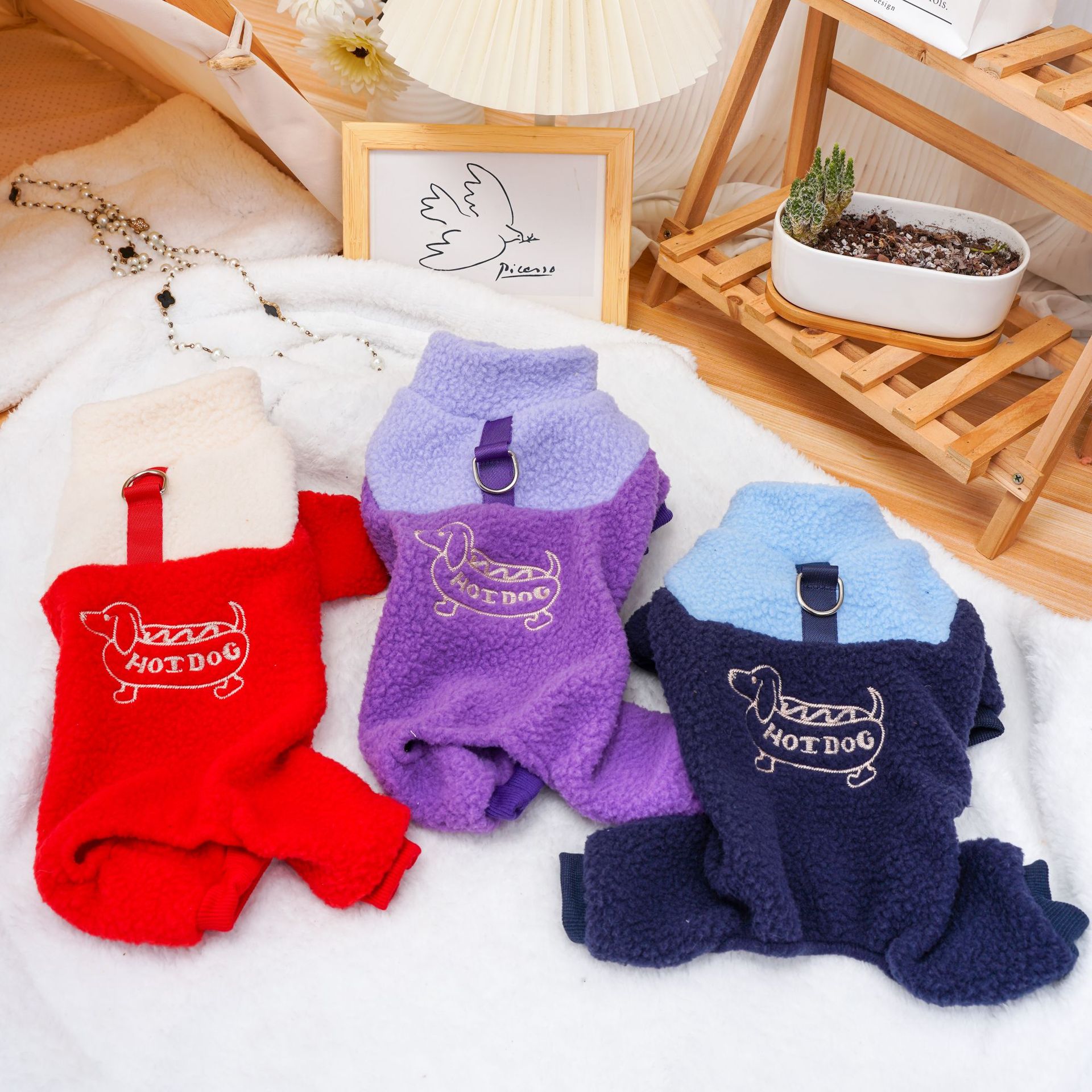 秋冬のペット服の子犬の猫の子羊の絨毯のホットドッグの刺繍の4足のズボンは熊のテディの小型犬より卸売りします。