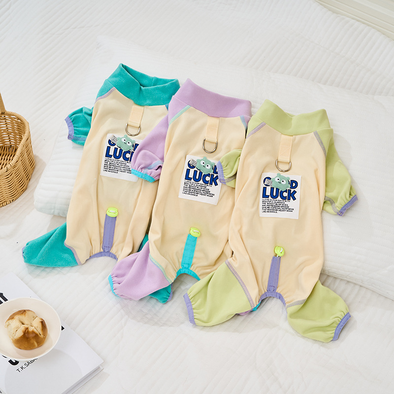 秋冬季新款毛绒拼接撞色四腿衣宠物服装狗狗衣服泰迪猫咪衣服