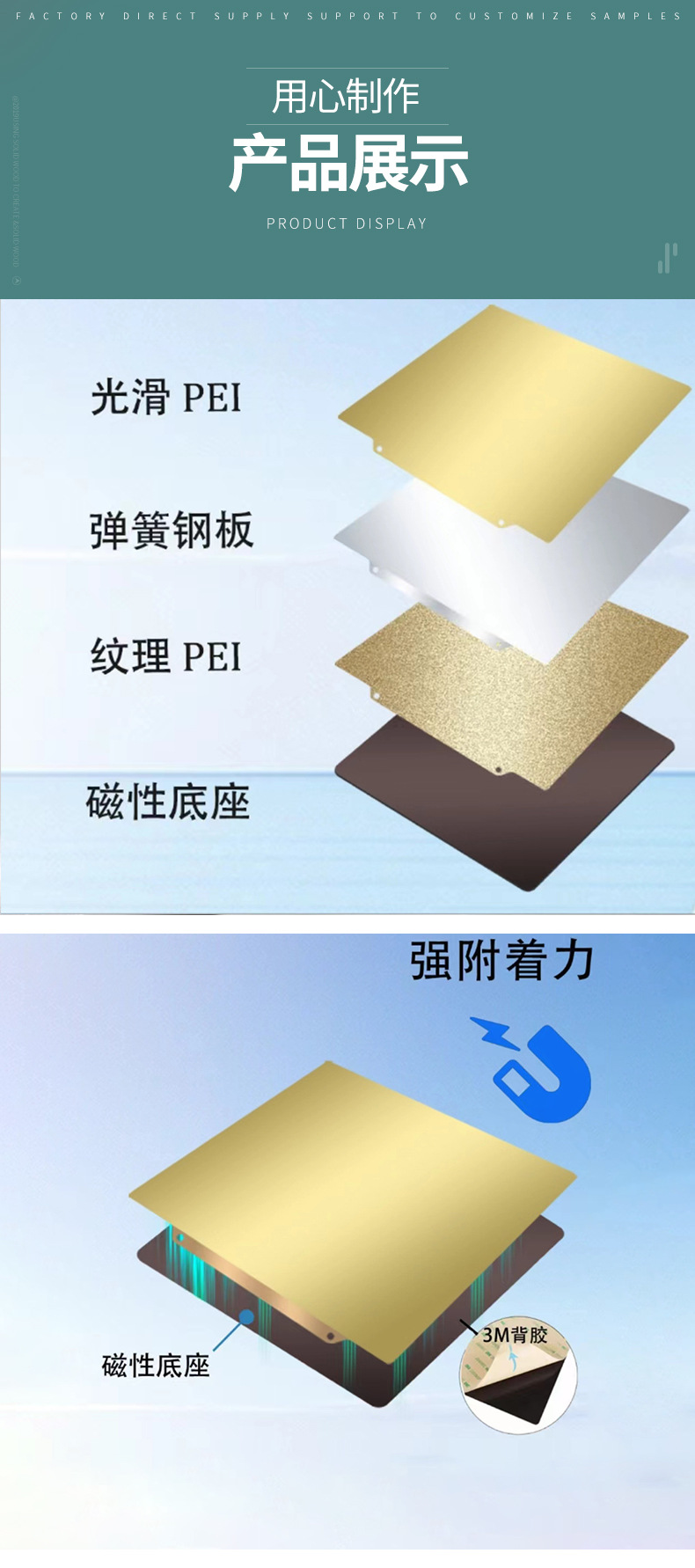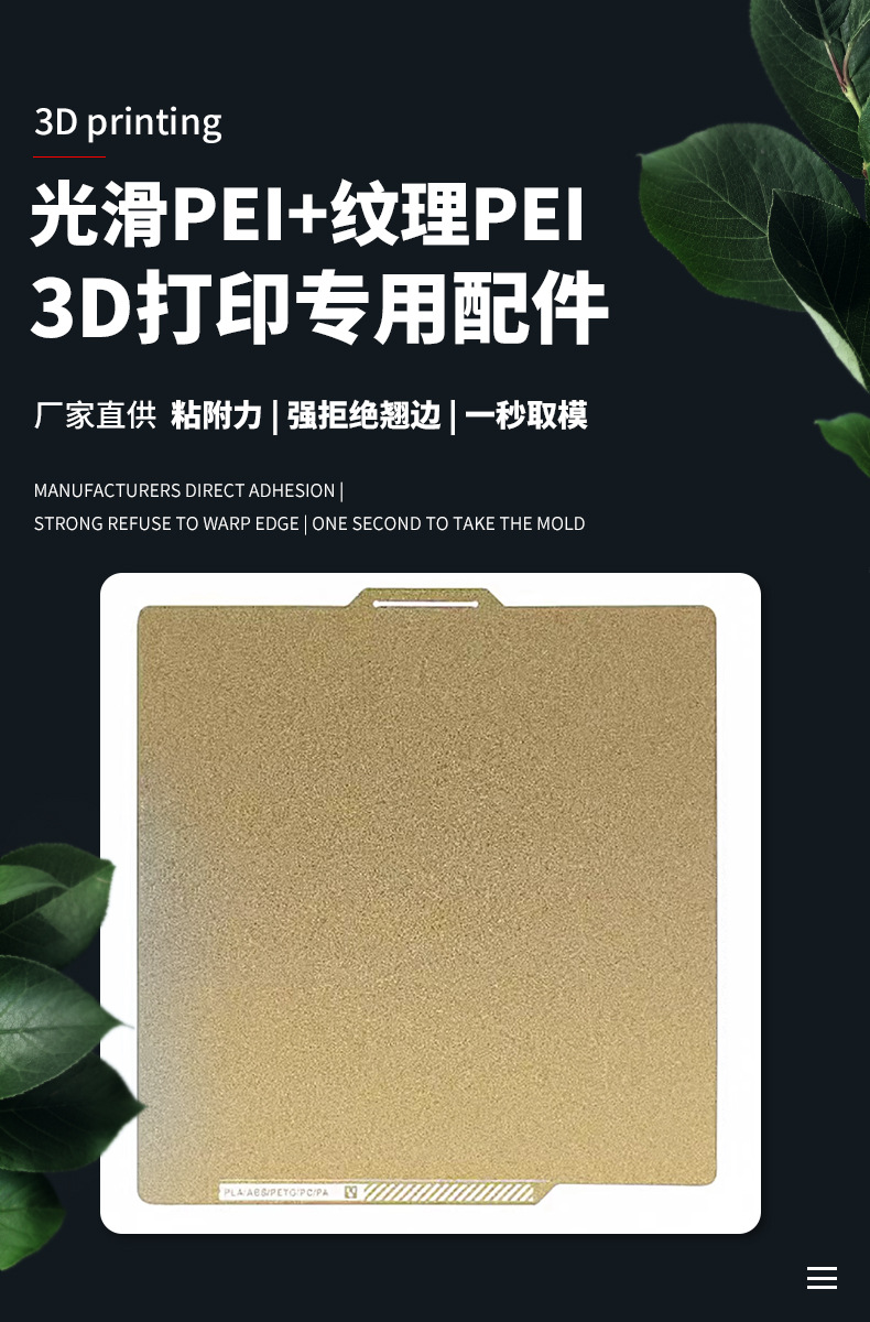 3D打印机配件双面pei弹簧钢板喷涂粉末金热床平台打印面板各尺寸