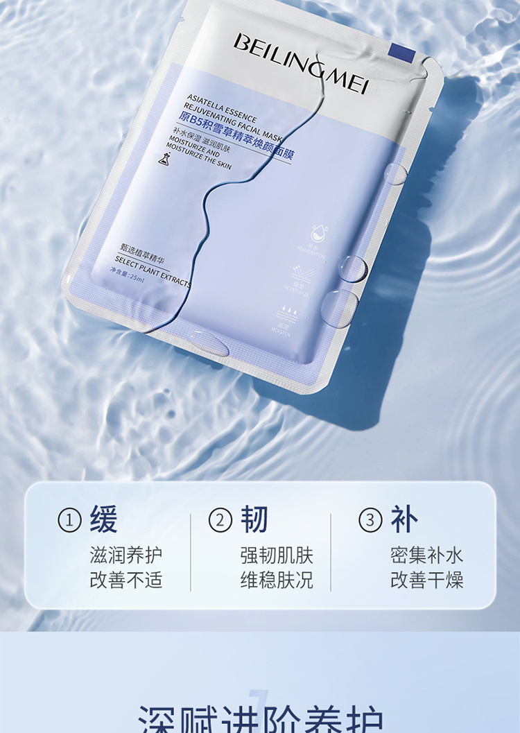 贝玲美原B5积雪草精萃焕颜面膜补水保湿改善肌肤滋润柔嫩面膜厂家