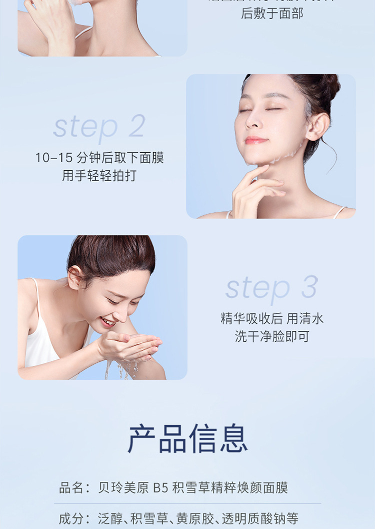贝玲美原B5积雪草精萃焕颜面膜补水保湿提亮肤色面部护理化妆面膜