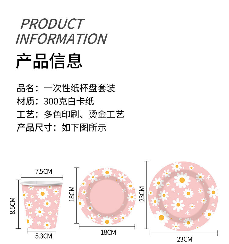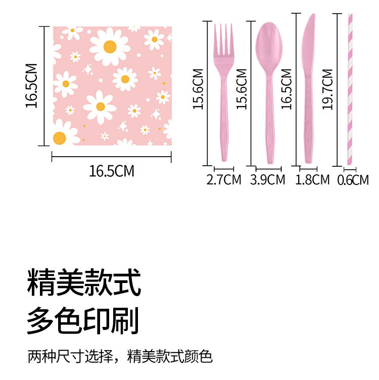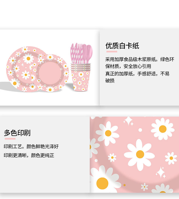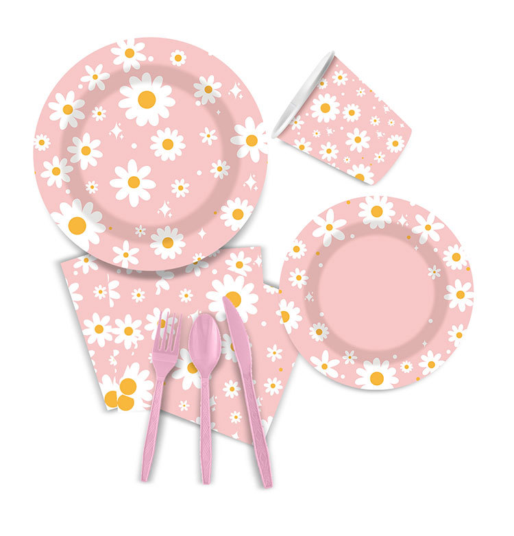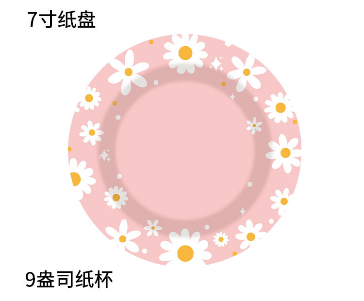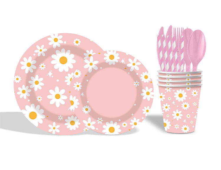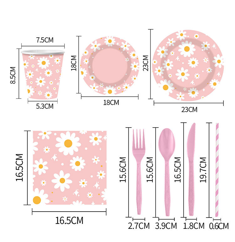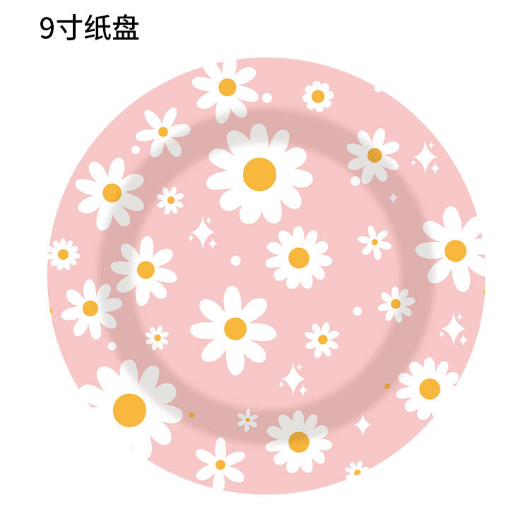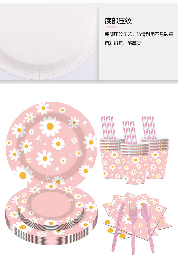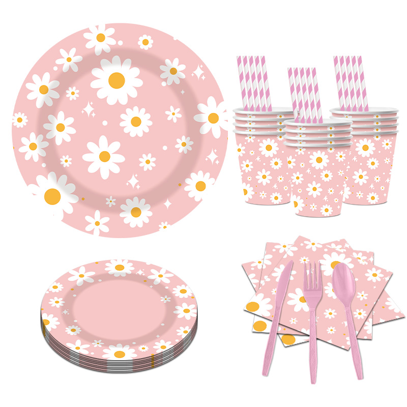 新款粉色雏菊主题派对一次性纸杯纸盘纸巾吸管朋友同学聚会装饰品