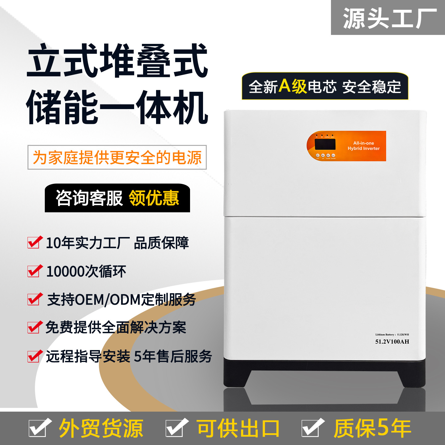 10kW家庭用電源太陽光発電蓄電システム垂直型家庭用積層蓄電インバーター一体機