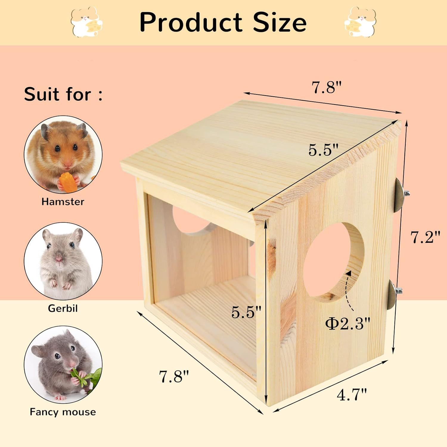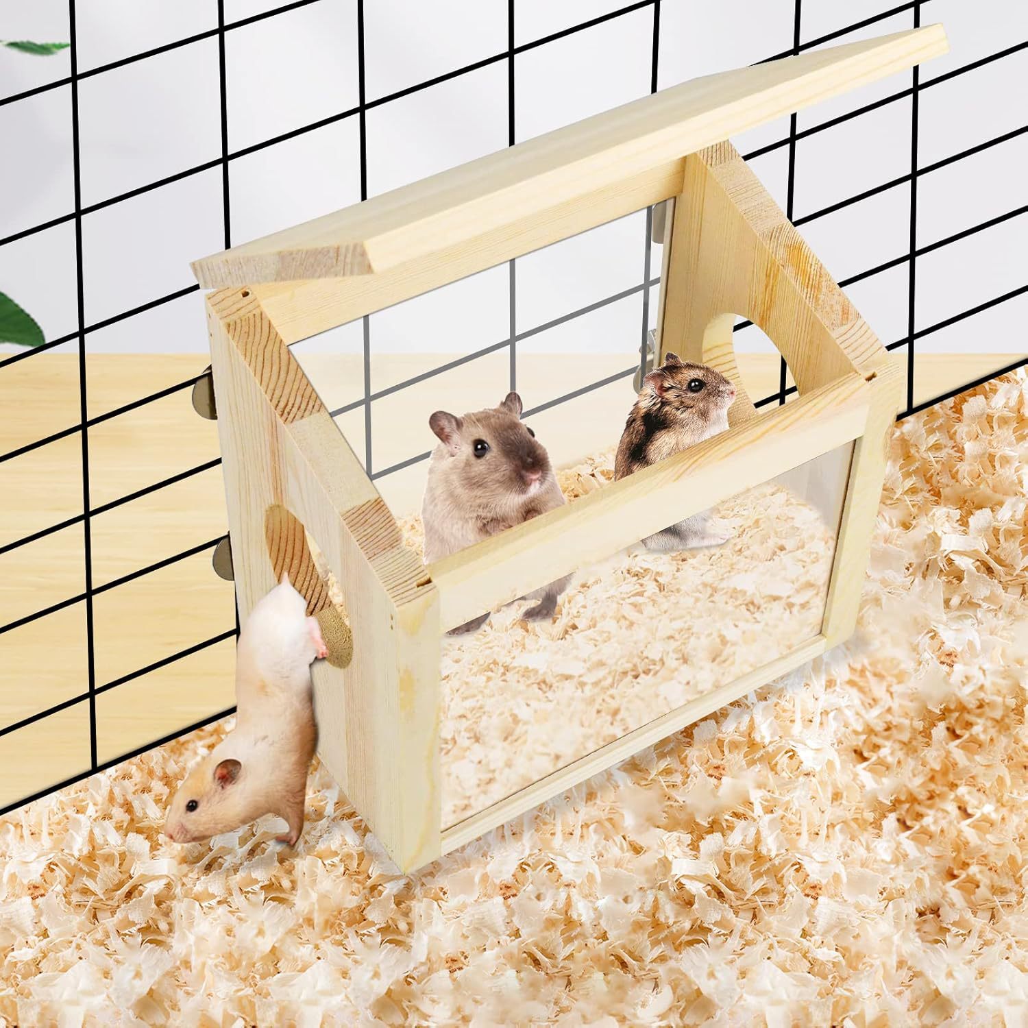 仓鼠实木窝透明亚克力躲避屋金丝熊小房子平台用品实木造景玩具