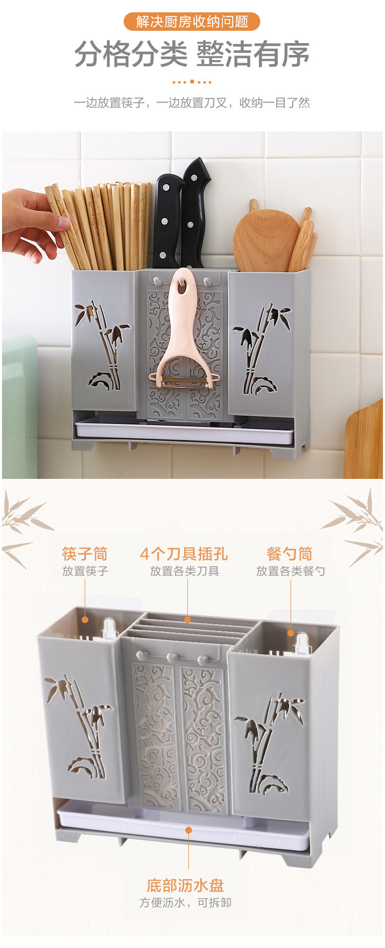 箸籠家庭用キッチン壁掛け箸筒水切り棚箸籠食器収納ケース刃物スプーンプラスチック棚