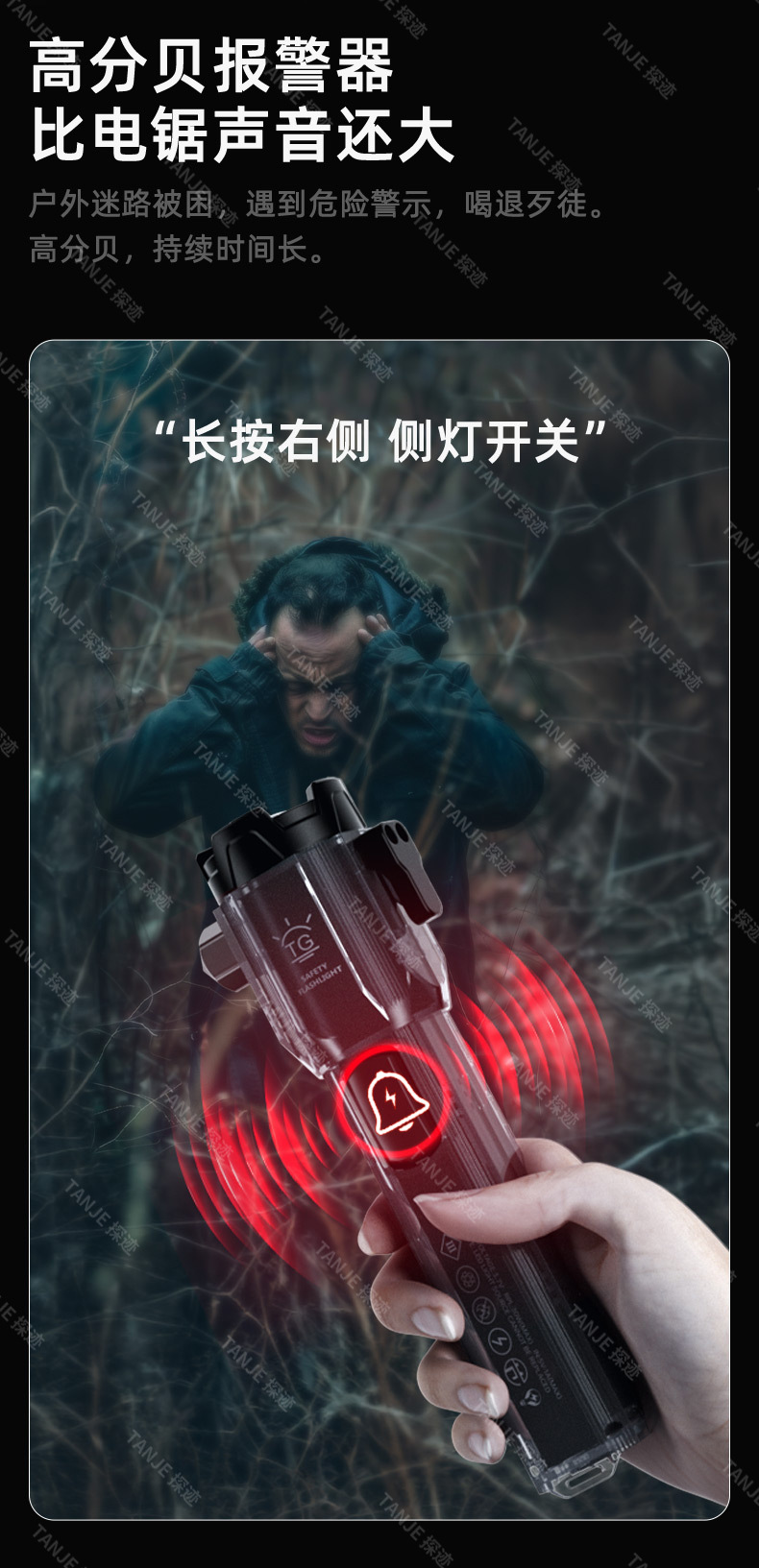 汽车安全锤手电筒户外强光长续航红光警示灯多功能破窗割刀工作灯