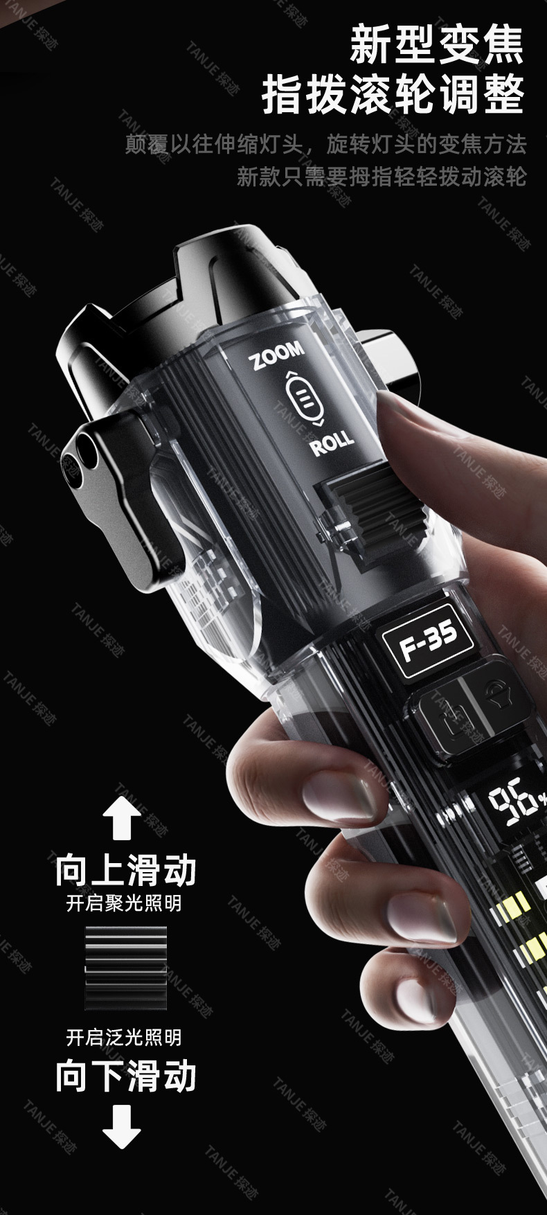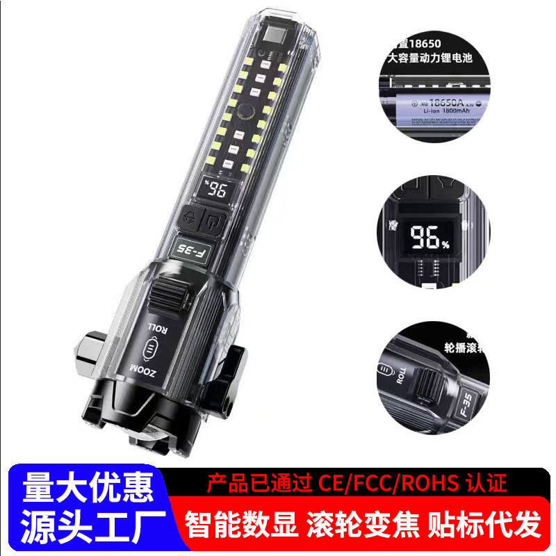 国境を越えた新しい多機能強力な光懐中電灯長距離屋外窓破壊ハンマーローラーズームデュアル光源充電式懐中電灯