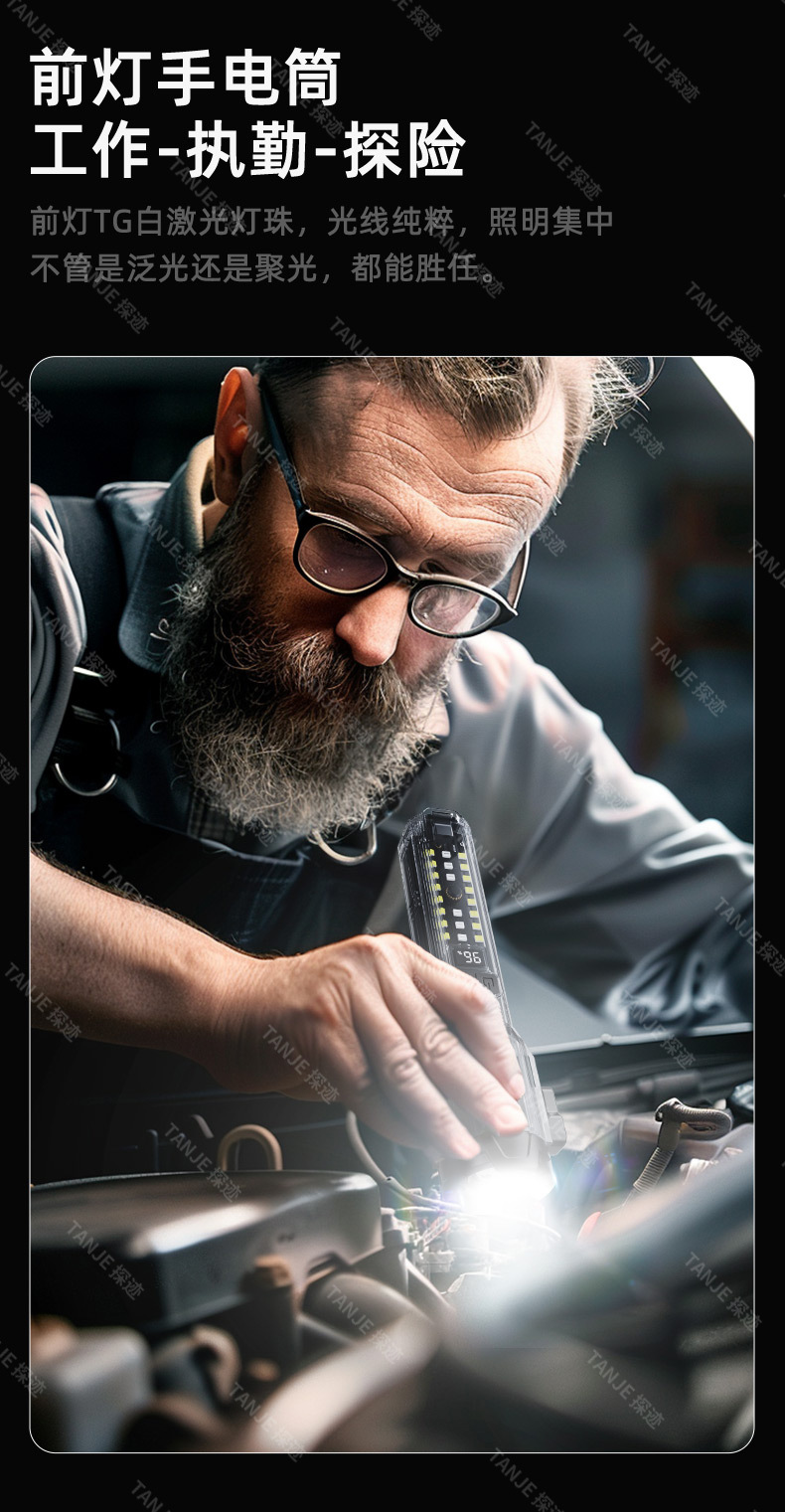 led手电筒户外强光长续航多功能工作灯家用充电cob安全锤手电筒