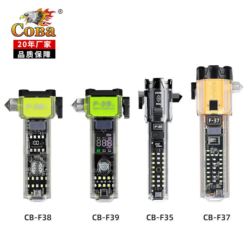 led手电筒户外强光爆亮长续航充电便携多功能安全锤应急cob工作灯