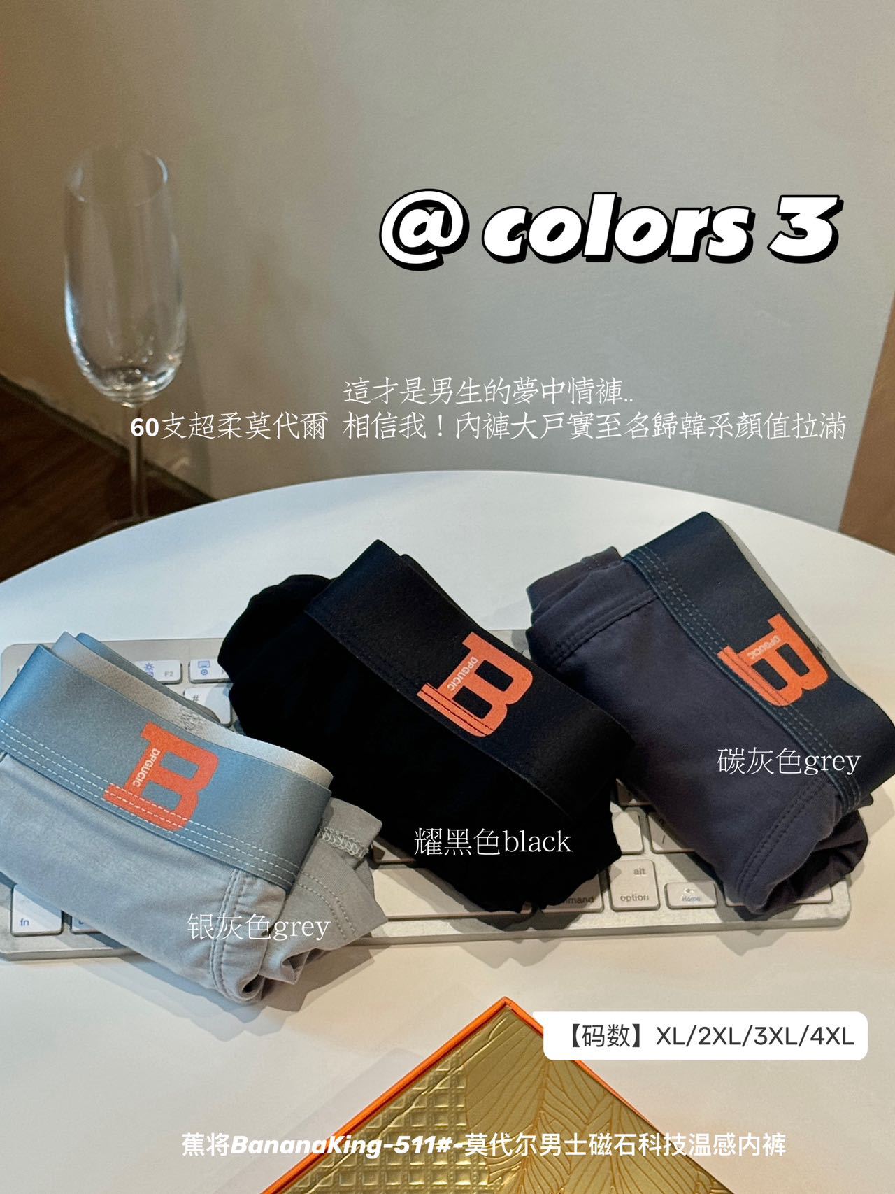 大きなシルバーエッジグラフェン抗菌メンズボクサーブリーフモーダルコットンギフトボックス通気性と快適なミッドウエストボクサーブリーフ