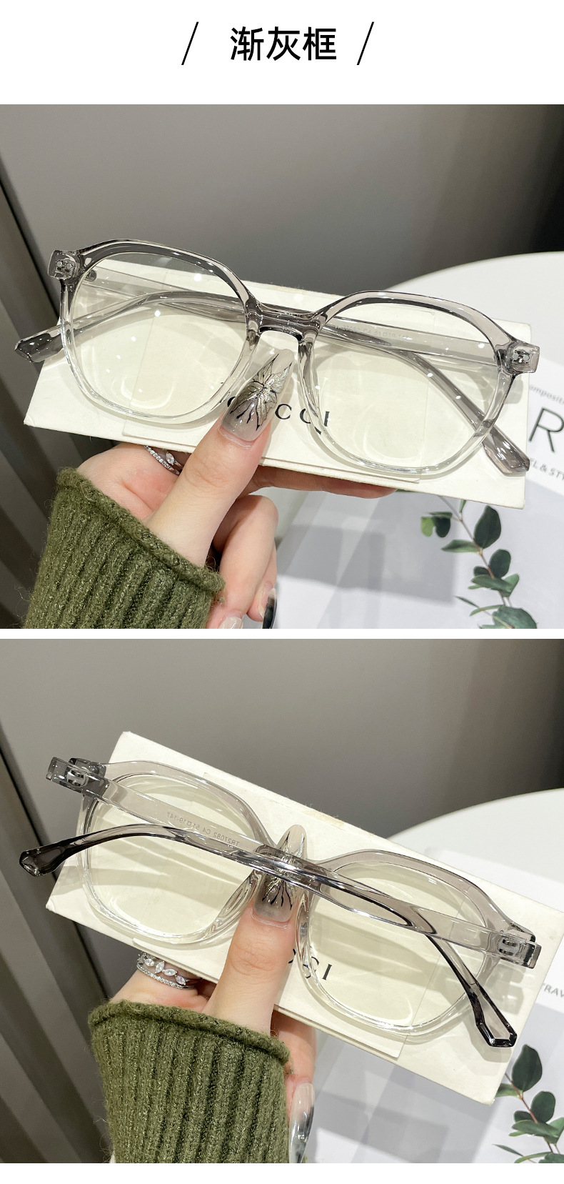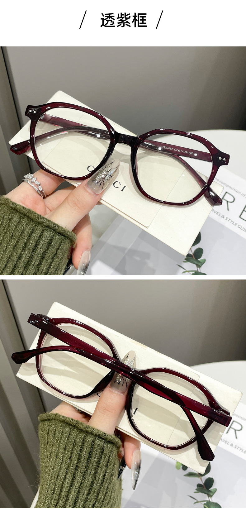 フレームカラー 透明な紫色のフレーム,透明なコーヒーフレーム,半透明のグリーンフレーム,サンドブラックフレーム,光沢のある黒のフレーム,べっ甲フレーム,レンコンパウダーフレーム,グラデーショングレーフレーム