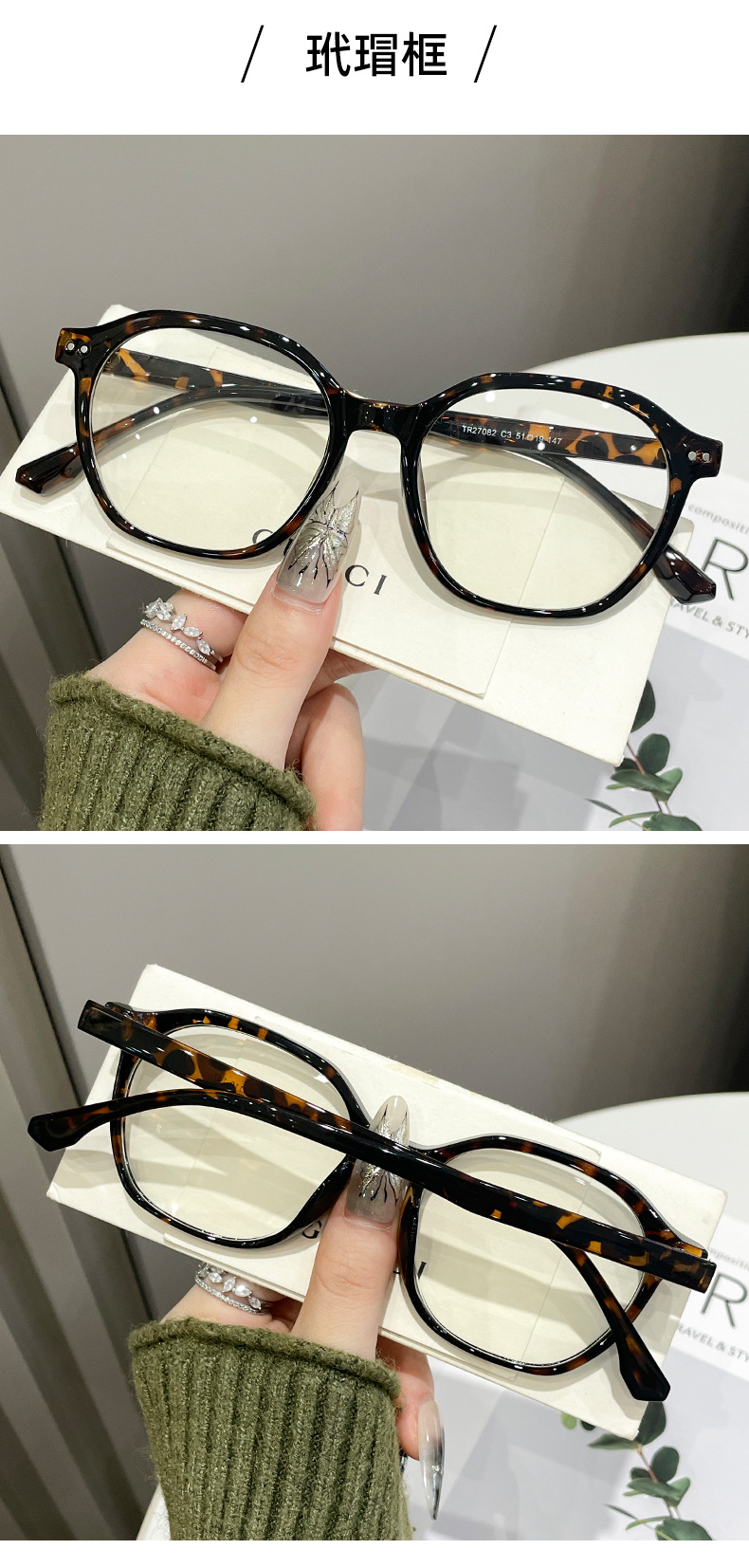 FakeオタクTRフレーム楕円形可フィット度高级感女性べっこうメガネすっぴんフレームメガネフレーム