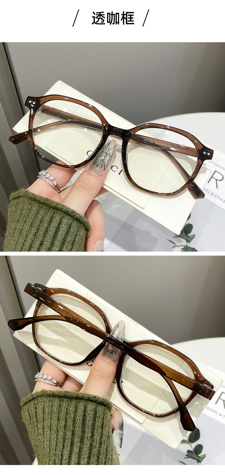 超軽量TR90冷茶色メガネフレームレトロフレーム高级感可配近小爱小本すっぴんフレームメガネフレーム