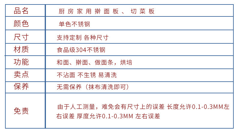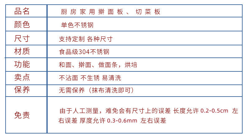 厨房不锈钢菜板揉面板擀面板烘培案板切菜案板大号加厚切水果砧板