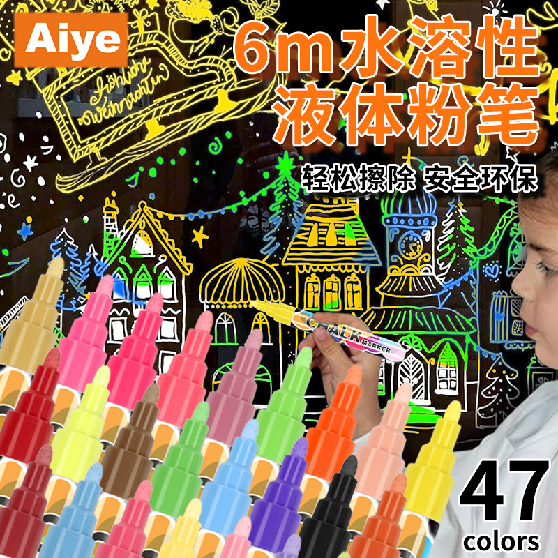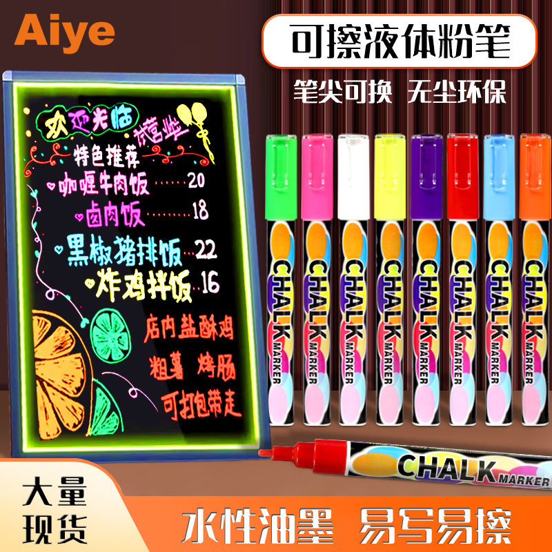 Aiyecartoon カラー蛍光ペン消去可能なマーカー広告ライトボードペン学生落書き大容量黒板絵画ペン
