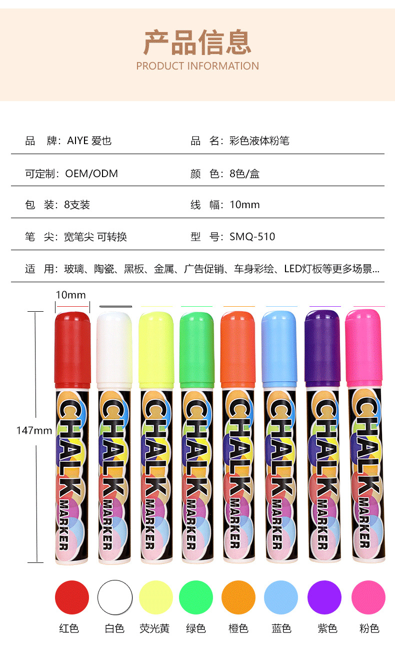 LED電子蛍光板専用ペン丸頭水溶性チョークカラー無塵超コストパフォーマンス消せる液体チョーク