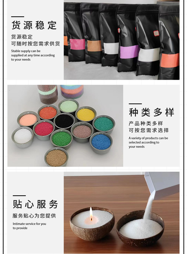 工場は国境を越えた色の砂ろうそくの原料アマゾンの爆発的な真珠ワックスの浮水砂ワックスの粒子を供給している