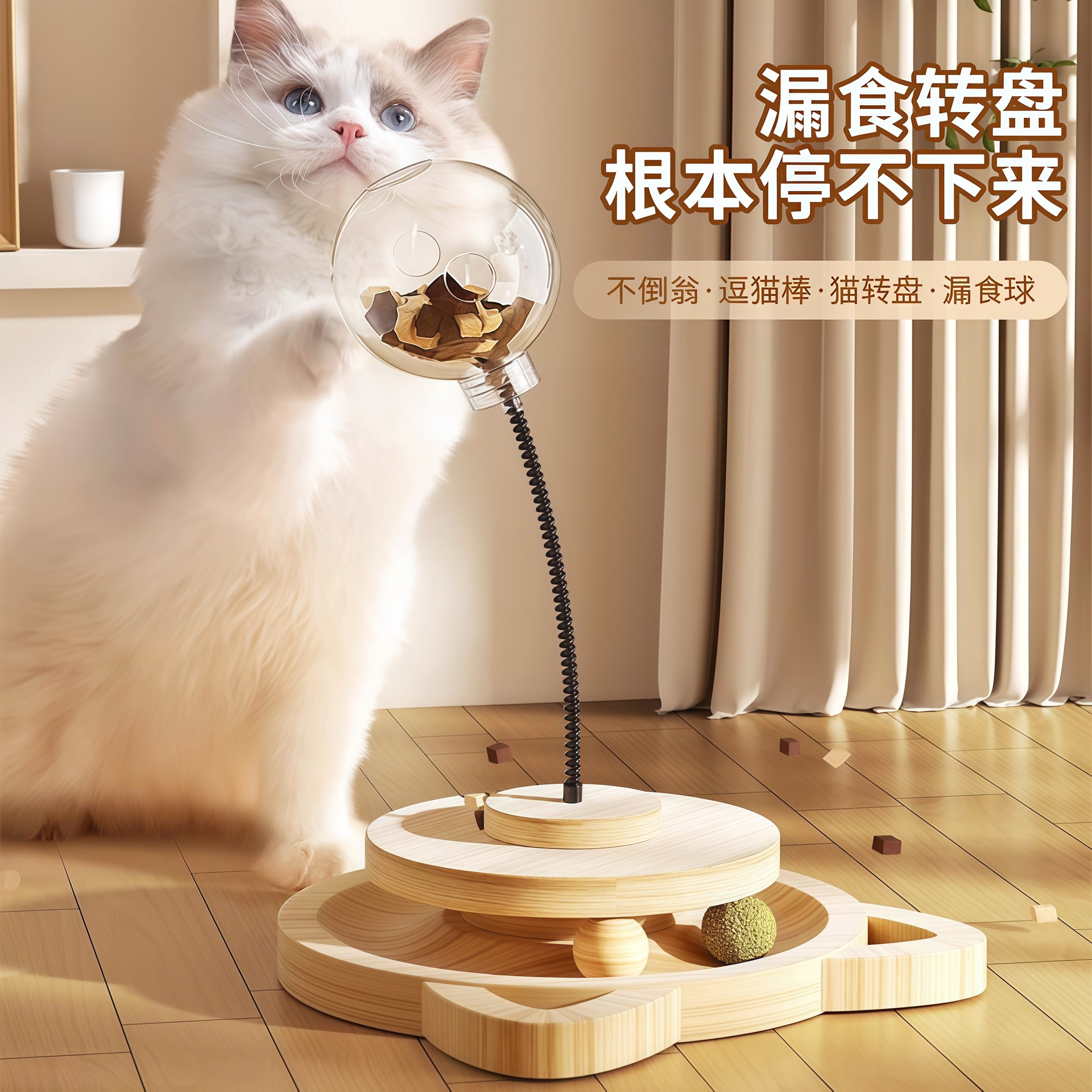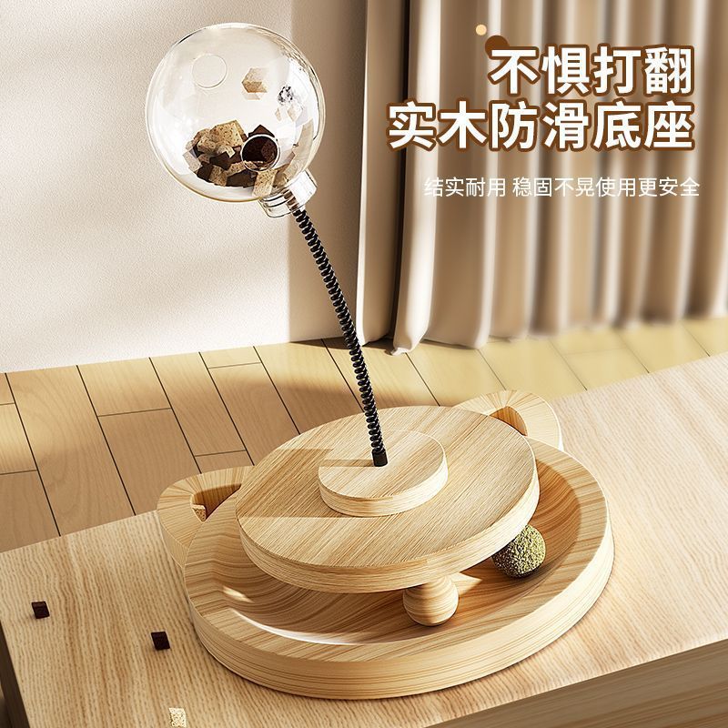 実木回転スプリング家庭用猫漏食球ペット玩具猫棒猫が自分で食器猫の食糧を漏らした