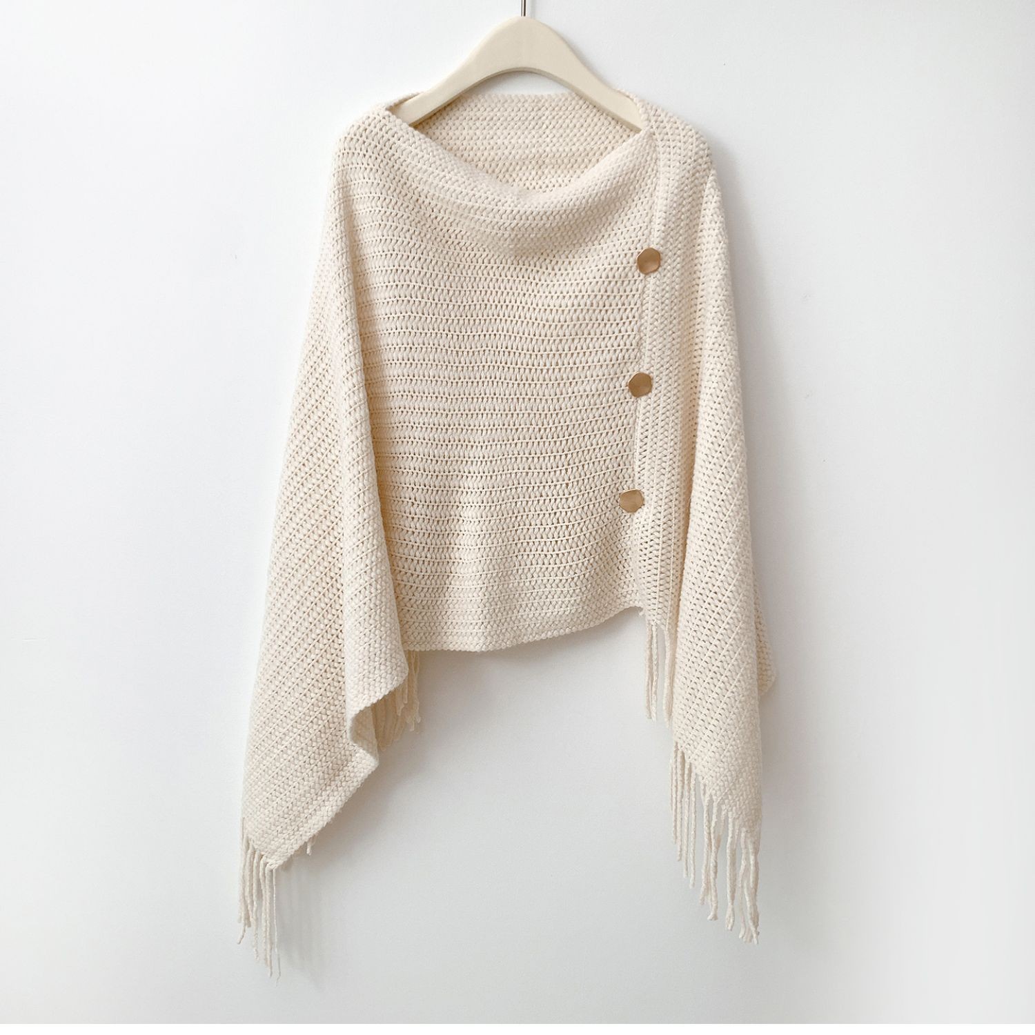 新款时尚百搭流苏纽扣镂空针织套头披肩斗篷女旅行保暖空调房外搭