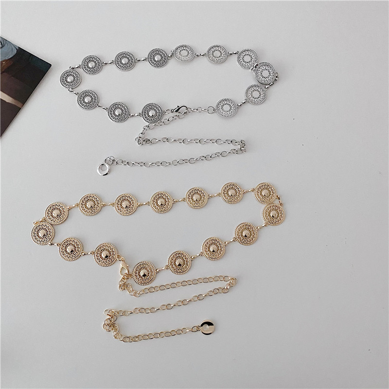 新型のウエストチェーンの女性はワンピースのスカートをつけて細いベルトの復古チェーンの古銀を飾ります。