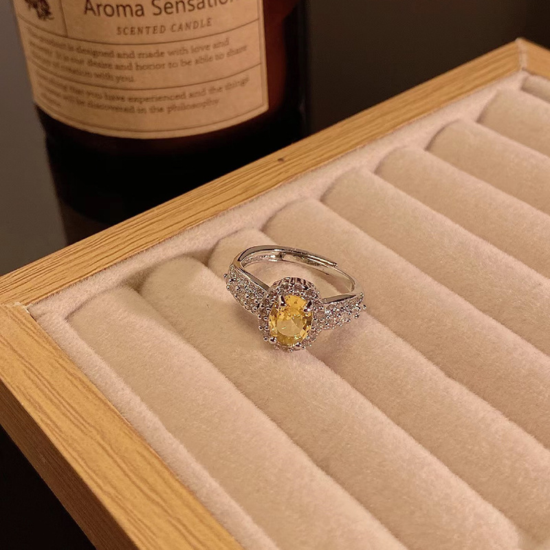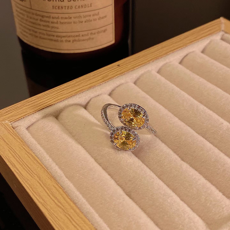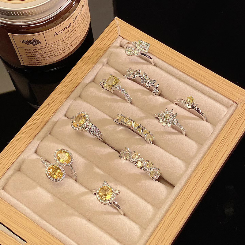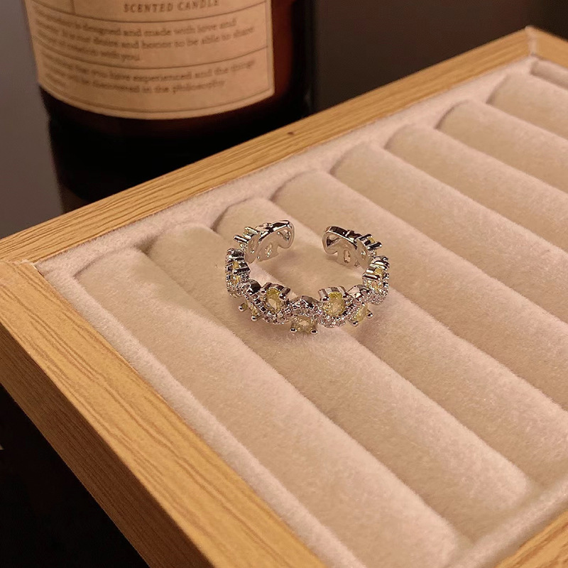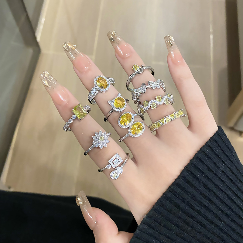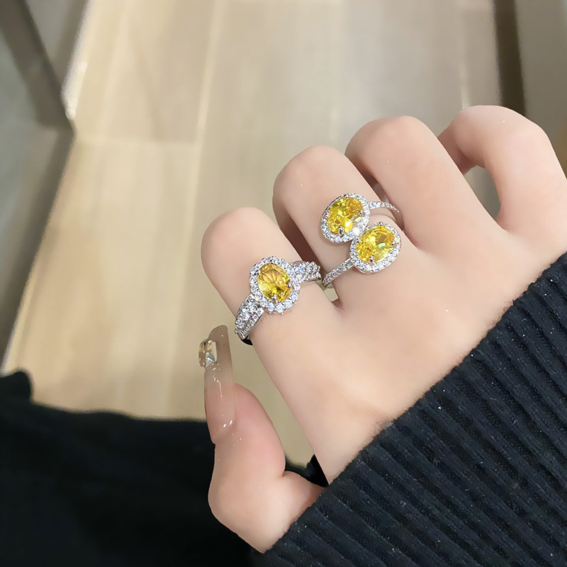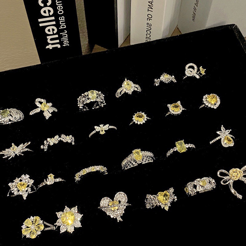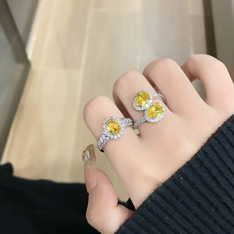 Xiaoxiangfeng マイクロセット甘くてクールなイエローダイヤモンド気質中空ファッションオープンリング女性の絶妙な軽い豪華なハイエンド人差し指リング