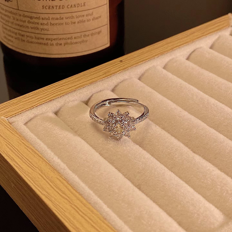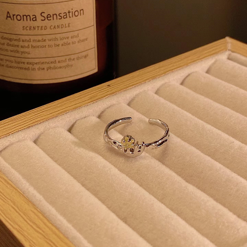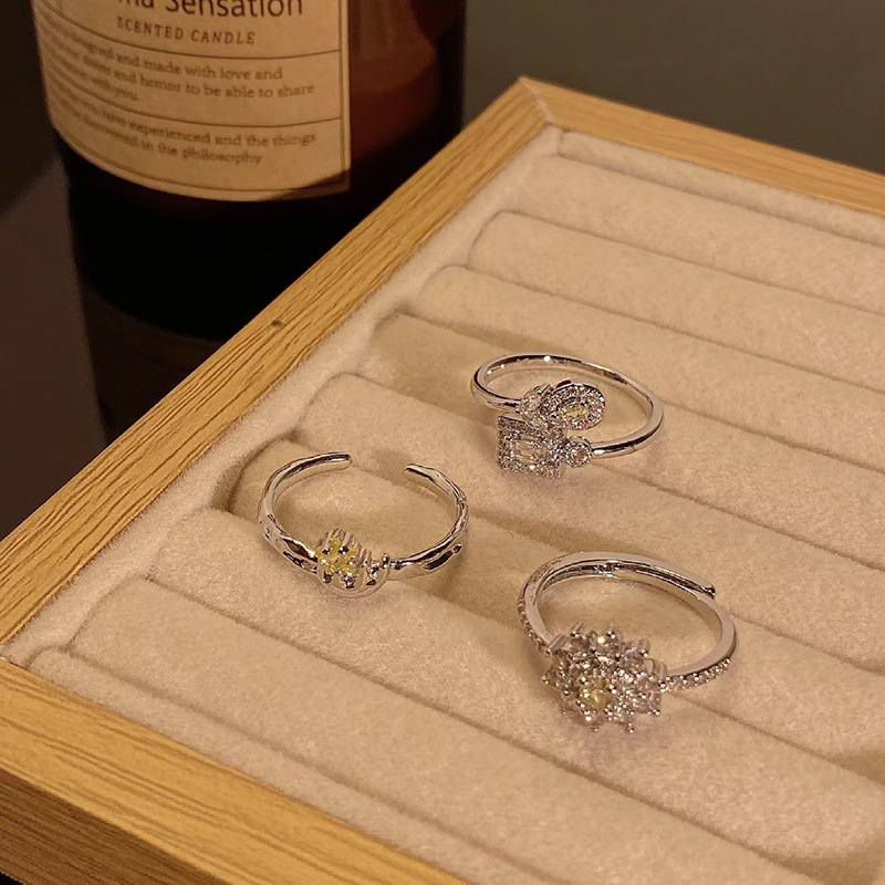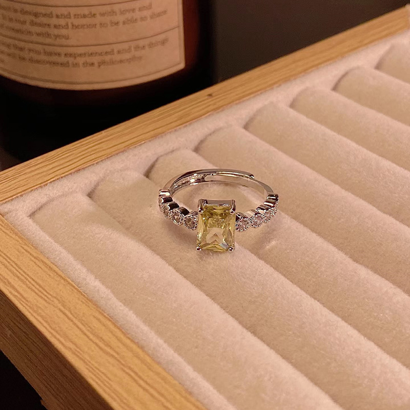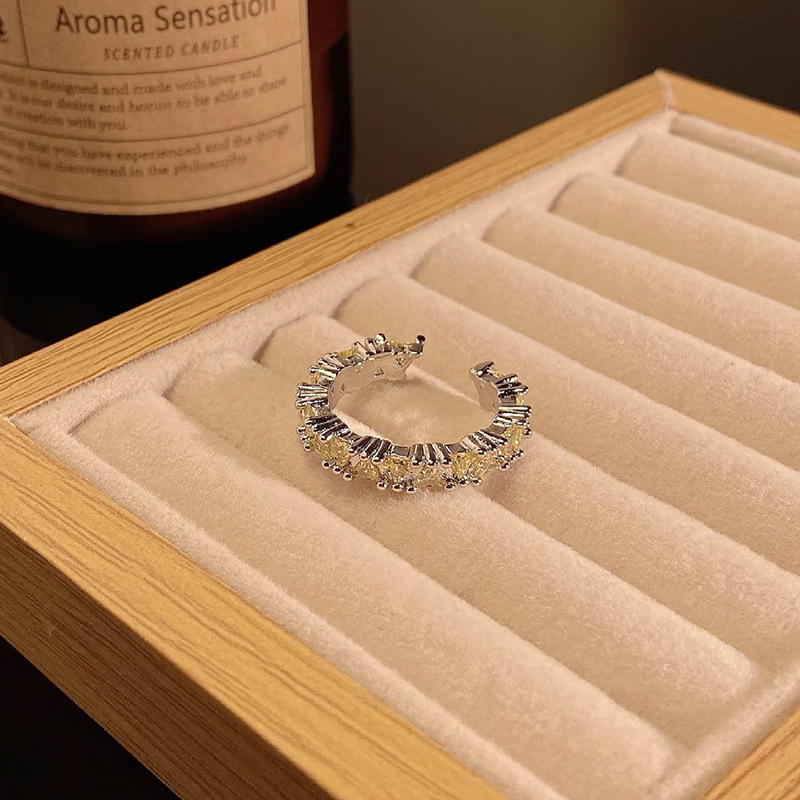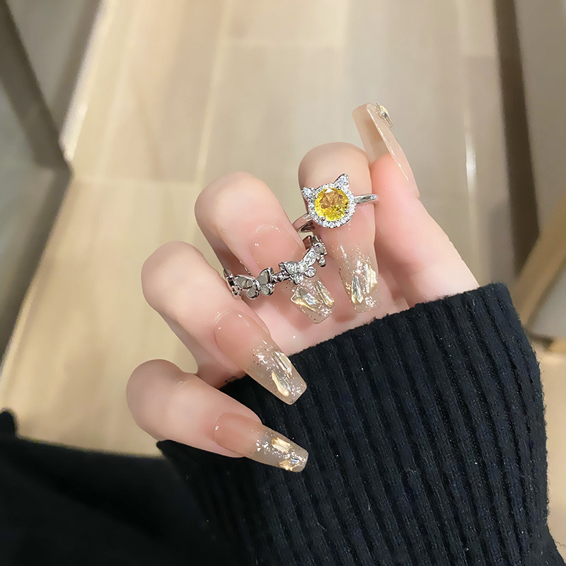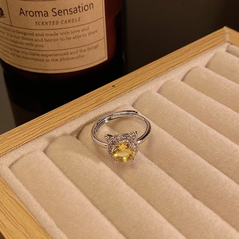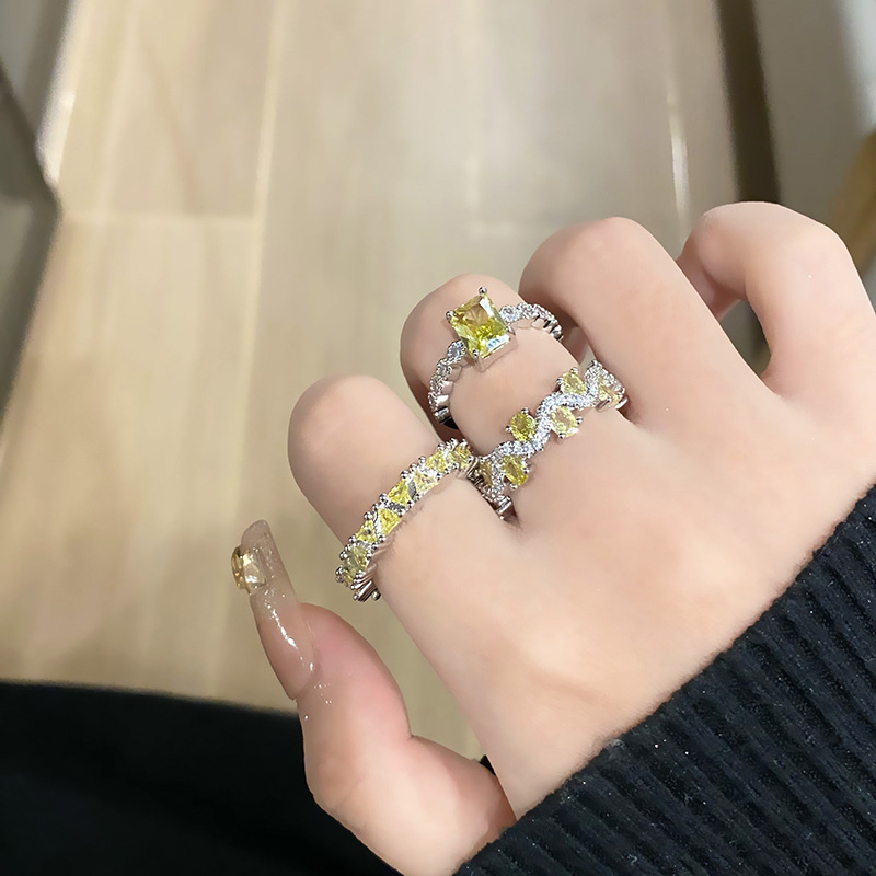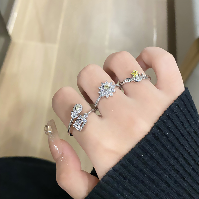 Xiaoxiangfeng マイクロセット甘くてクールなイエローダイヤモンド気質中空ファッションオープンリング女性の絶妙な軽い豪華なハイエンド人差し指リング