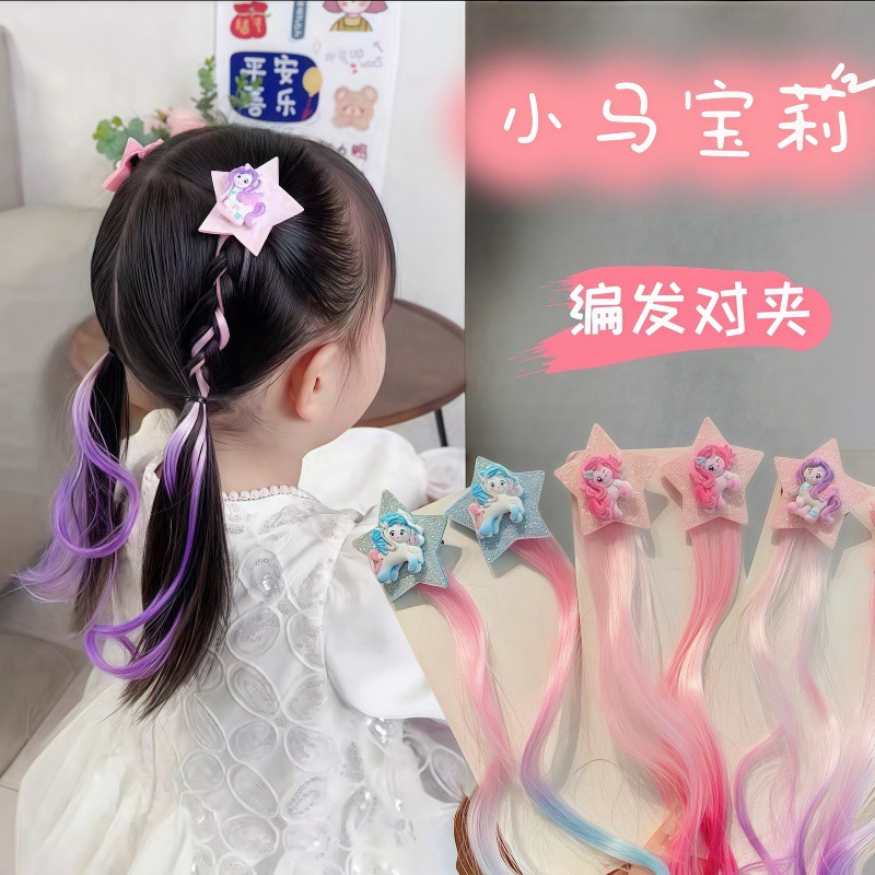 ポニーポーリーの子供のかつらのお下げは王女のかわいい漫画の五角星の頭飾りの赤ちゃんの編みの髪飾りを染めます。