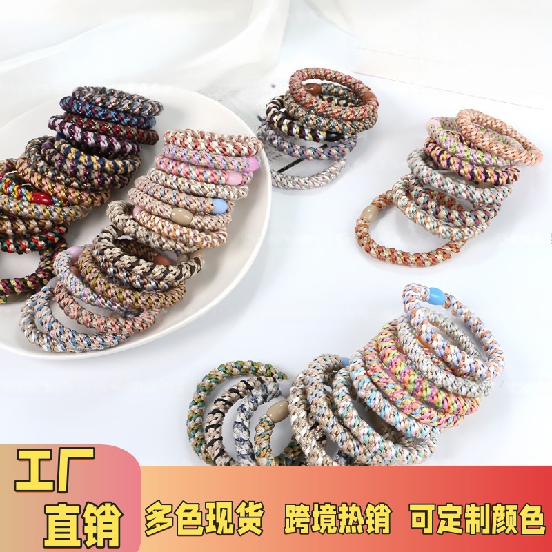 女性用の新しいクロスボーダーカラーのヘアゴム、女性用のハイエンドラバーバンドヘアゴム、ゴールドとシルバーのワイヤー、対照的な色の大胆な卸売トレンド