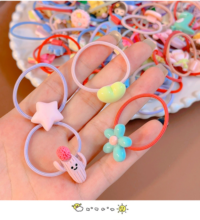 新款复古色系儿童发圈女童卡通扎头发橡皮筋宝宝头绳皮套发绳头饰