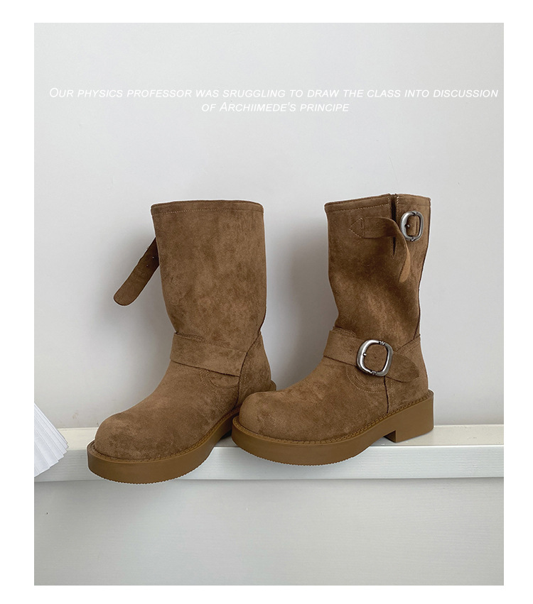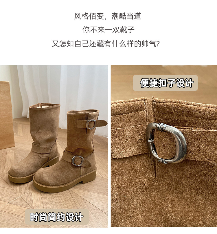 2025年秋冬新作 レトロメタル 超ソフト厚底 バイク用バックル付きショートブーツ レディース マーティンブーツ パイルブーツ
