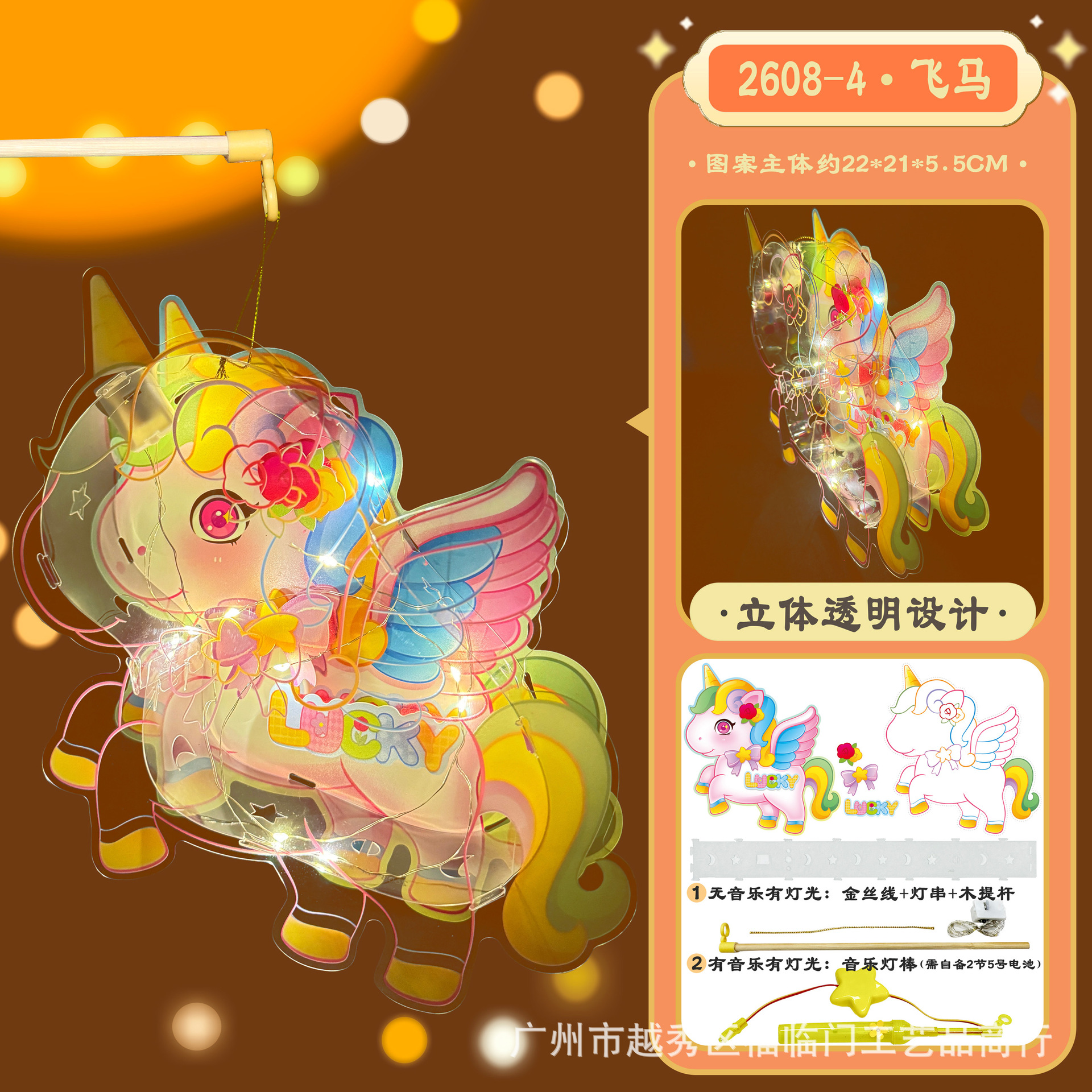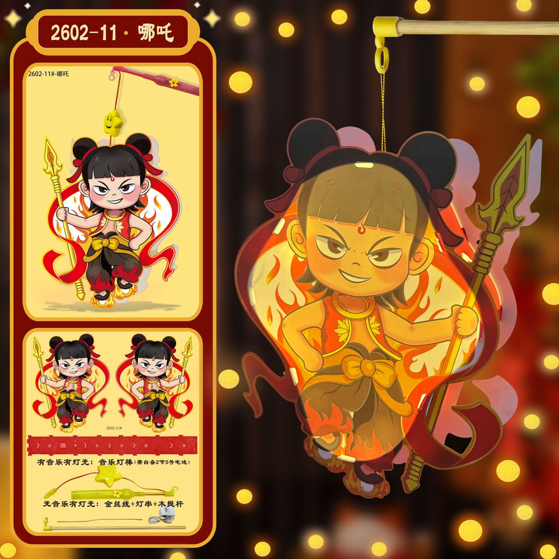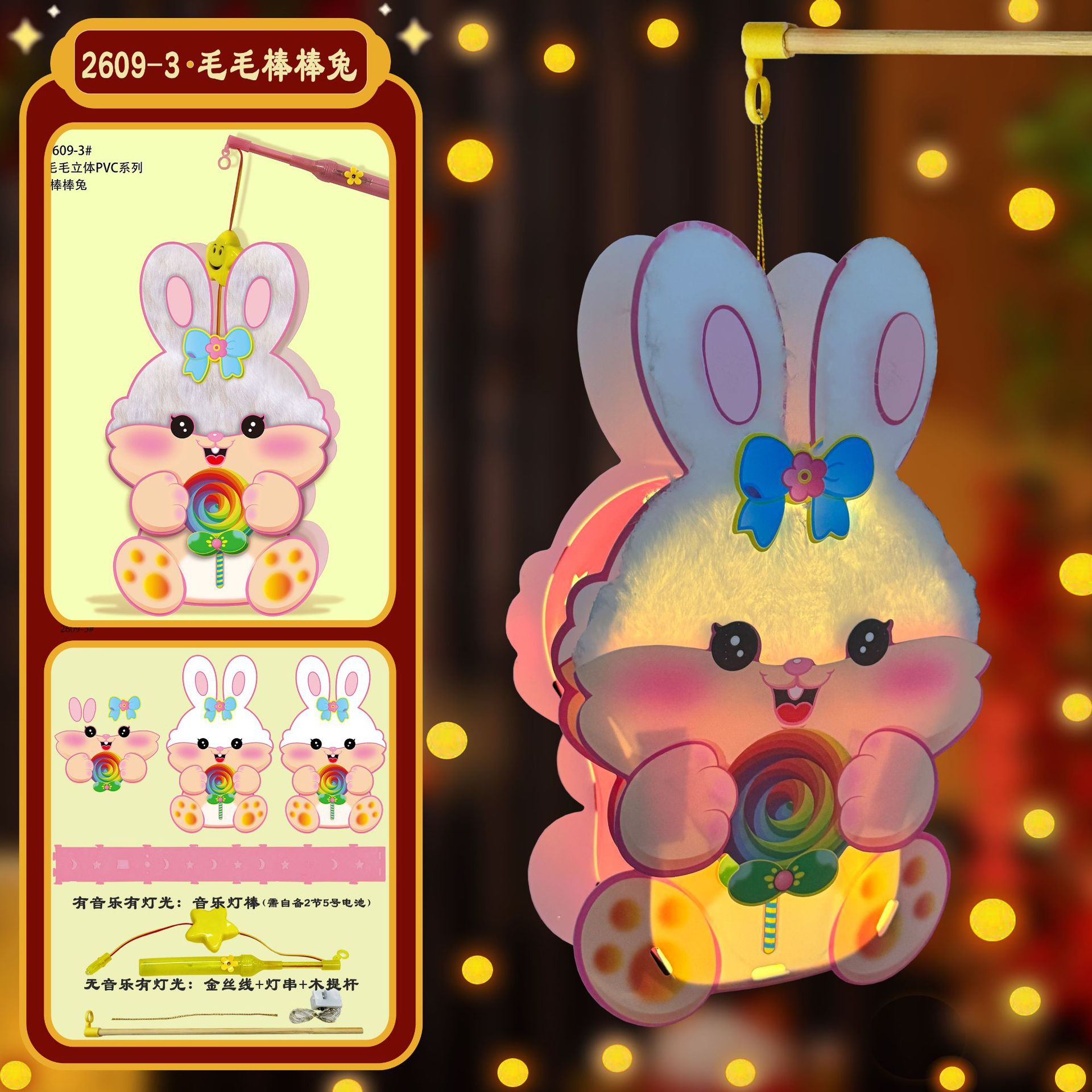 木製ポータブルポール + LED ライトコード (音楽なし),音楽付きポータブルスティック(電池は付属しません)
