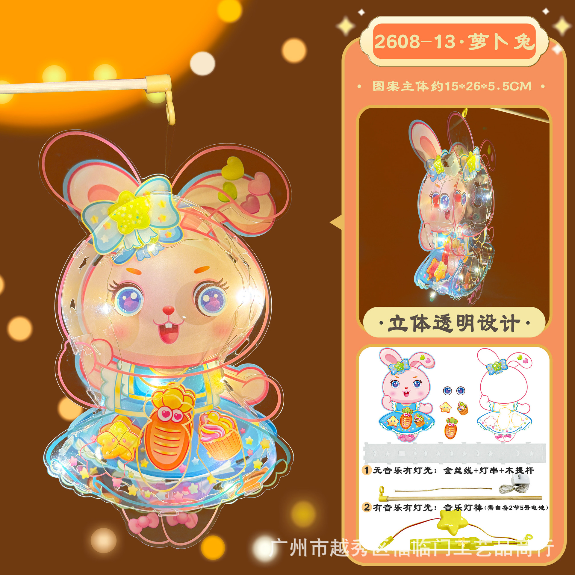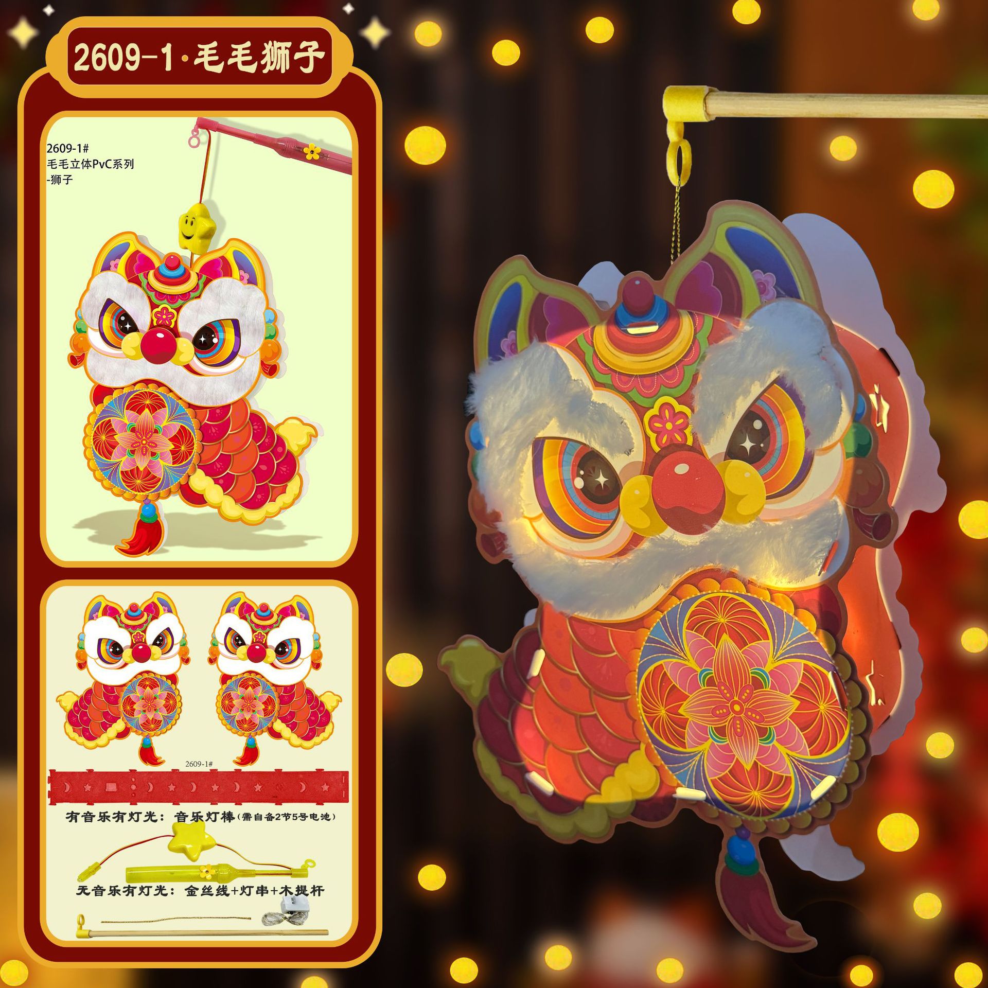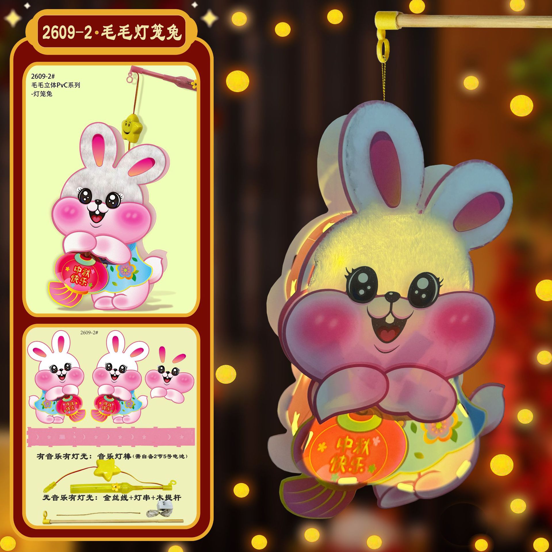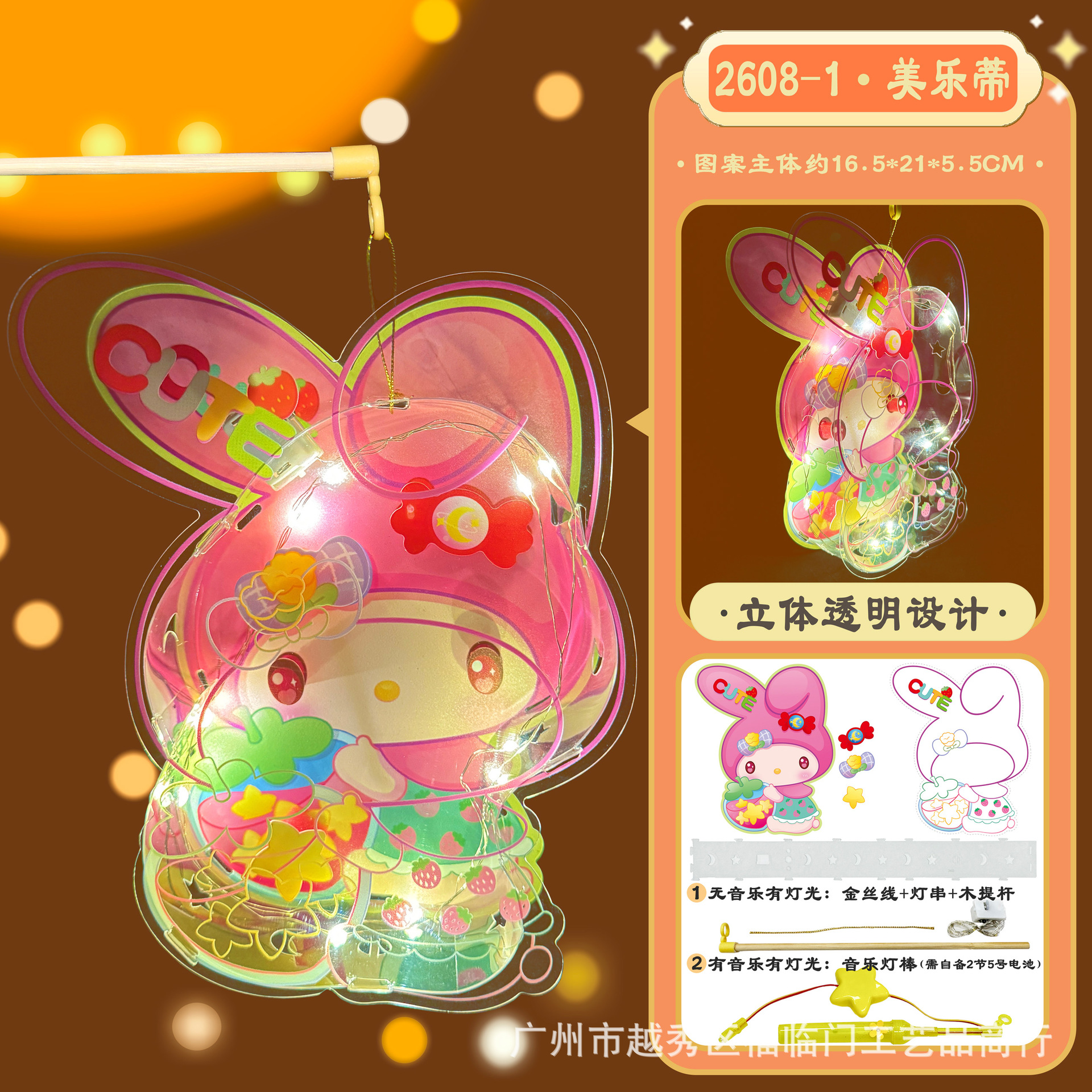 木製ポータブルポール + LED ライトコード (音楽なし),音楽付きポータブルスティック(電池は付属しません)