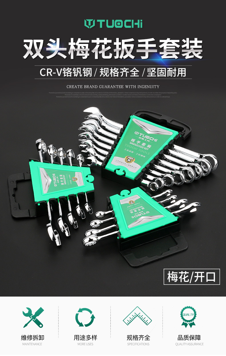 卸売りダブルヘッド梅レンチツールセット多機能自動車修理フォーク口両用開口レンチセット