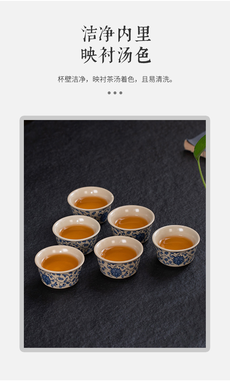 陶瓷功夫茶杯6个套装家用茶碗品茗杯茶具茶盏主人杯喝茶小杯子无