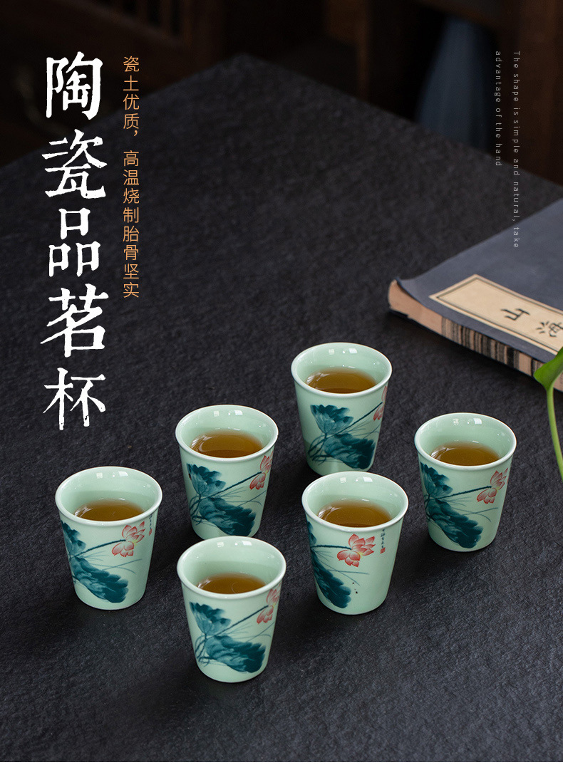工夫小湯飲み陶磁器湯飲みセット家庭用茶碗品茗杯単茶道具紫砂笠主人杯青磁