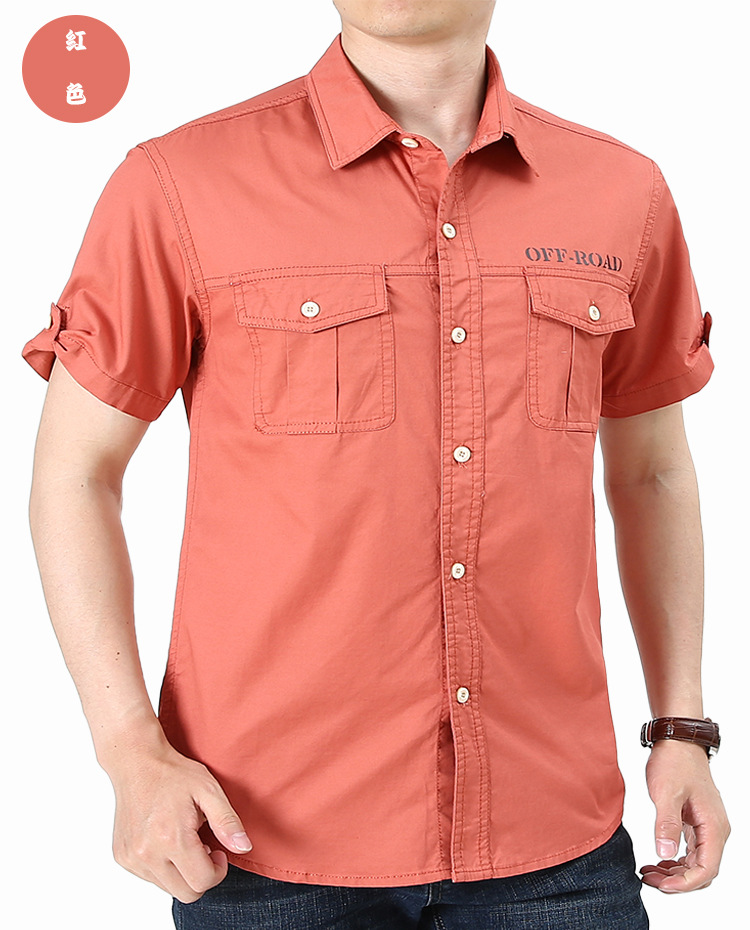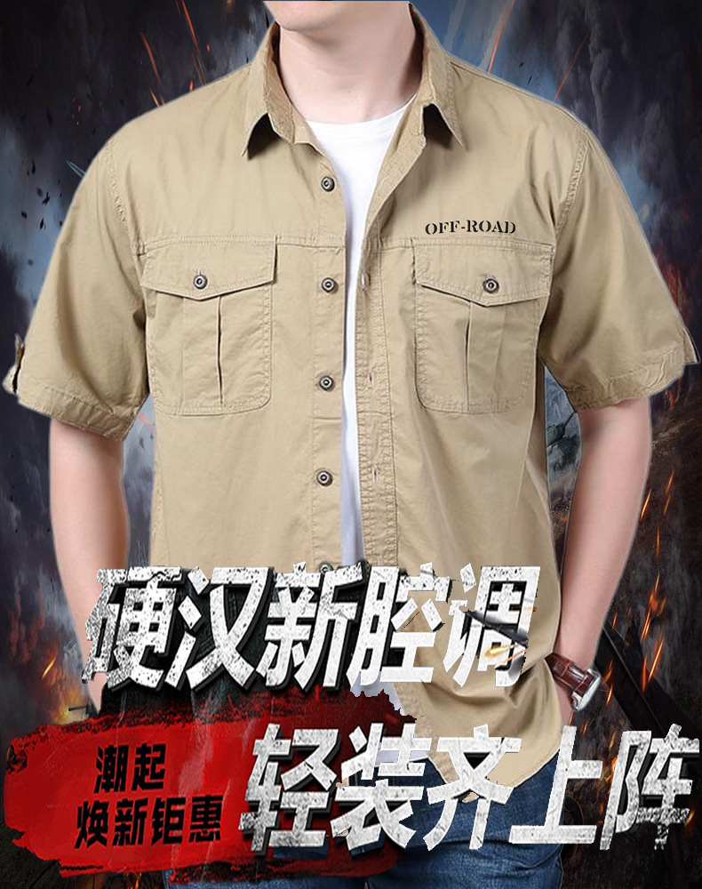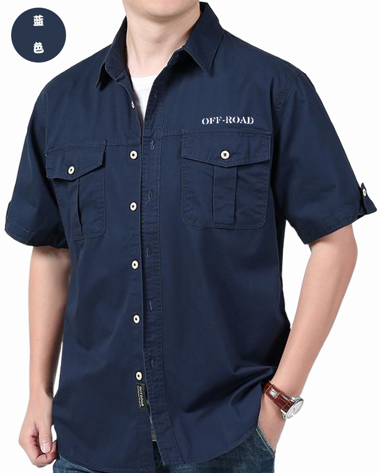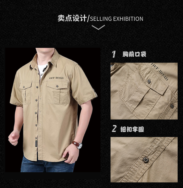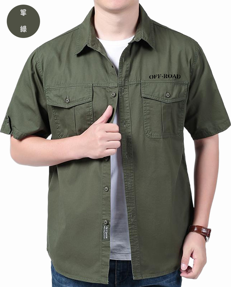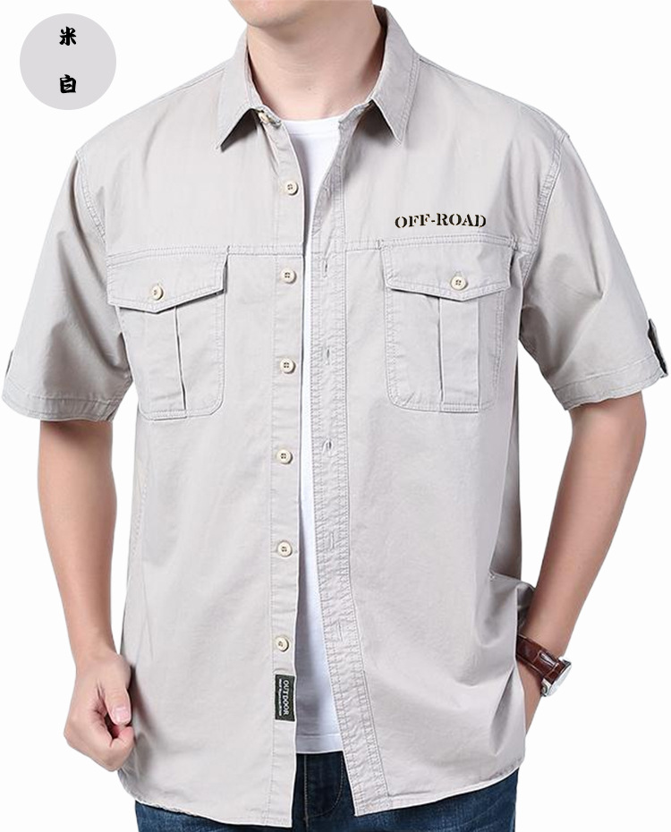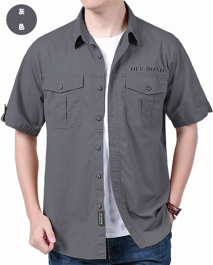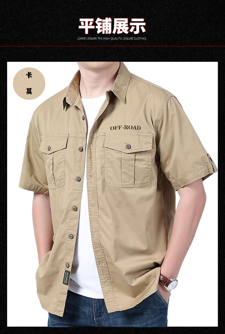 2024夏の新型工装シャツ男性純綿ゆるい多ポケット阿美カチカチ半袖中青年シャツ