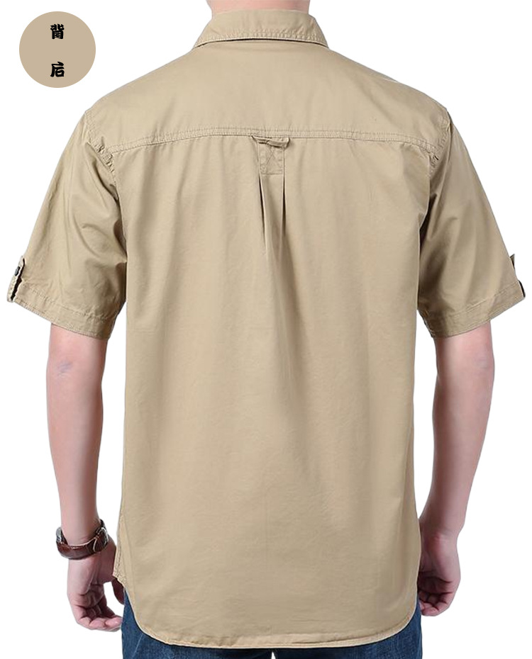 夏の屋外レジャー多ポケット工装半袖シャツ屋外通気性薄いシャツ氷糸弾力速乾男