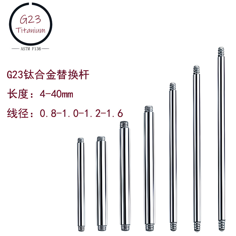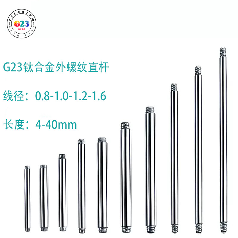 【名称】:G23钛合金人体穿刺饰品配件外螺纹直杆唇钉舌钉眉钉耳钉厂家直销