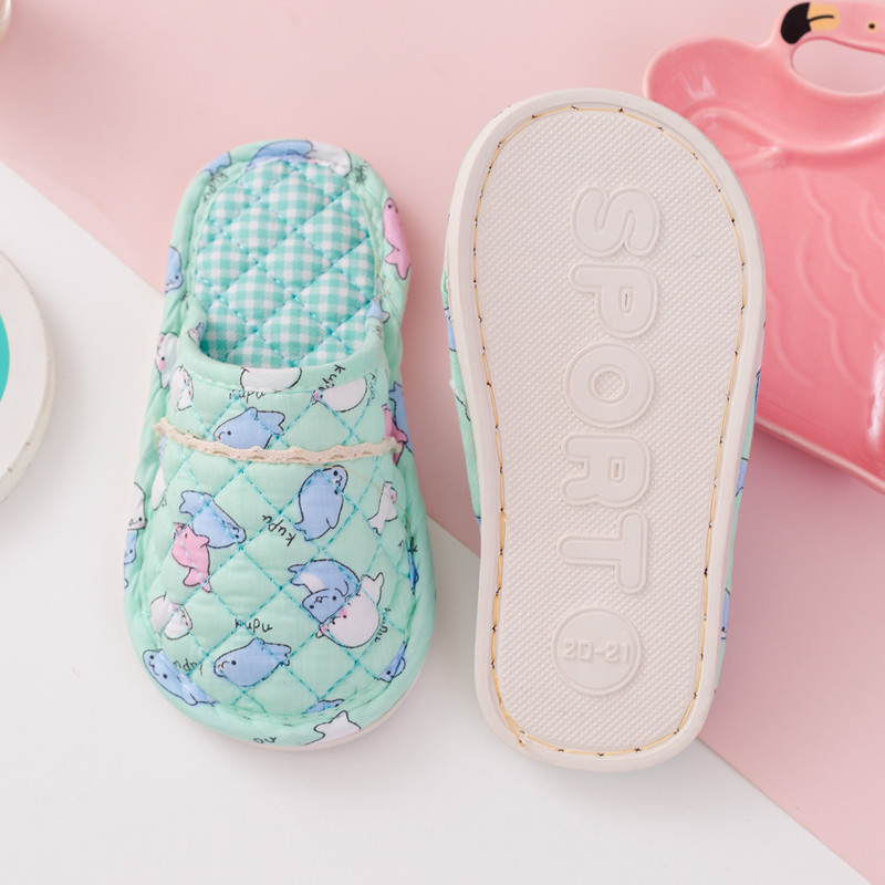 新型春秋冬子供男女赤ちゃん家庭用室内アニメ包頭ゴム底保温布芸綿スリッパ