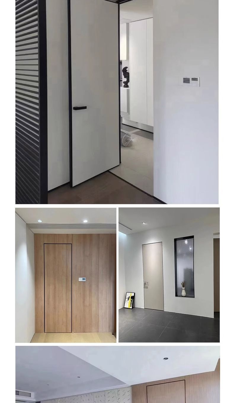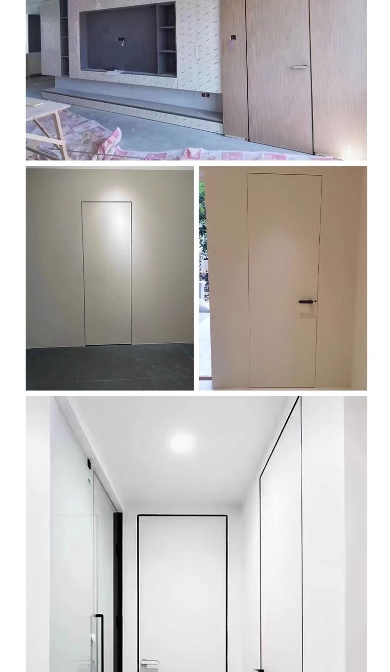 スターシティ室内の非常にシンプルなドアの隠しドアのないドアの暗いドアの狭い辺のアルミニウムの木の背景の壁は卸売りを隠します。
