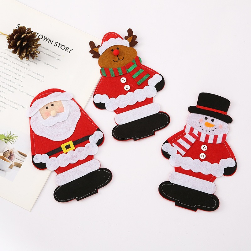 クリスマステーブルデコレーション、テーブル食器収納袋、クリスマスデコレーション、漫画のかわいいフェルトカトラリー
