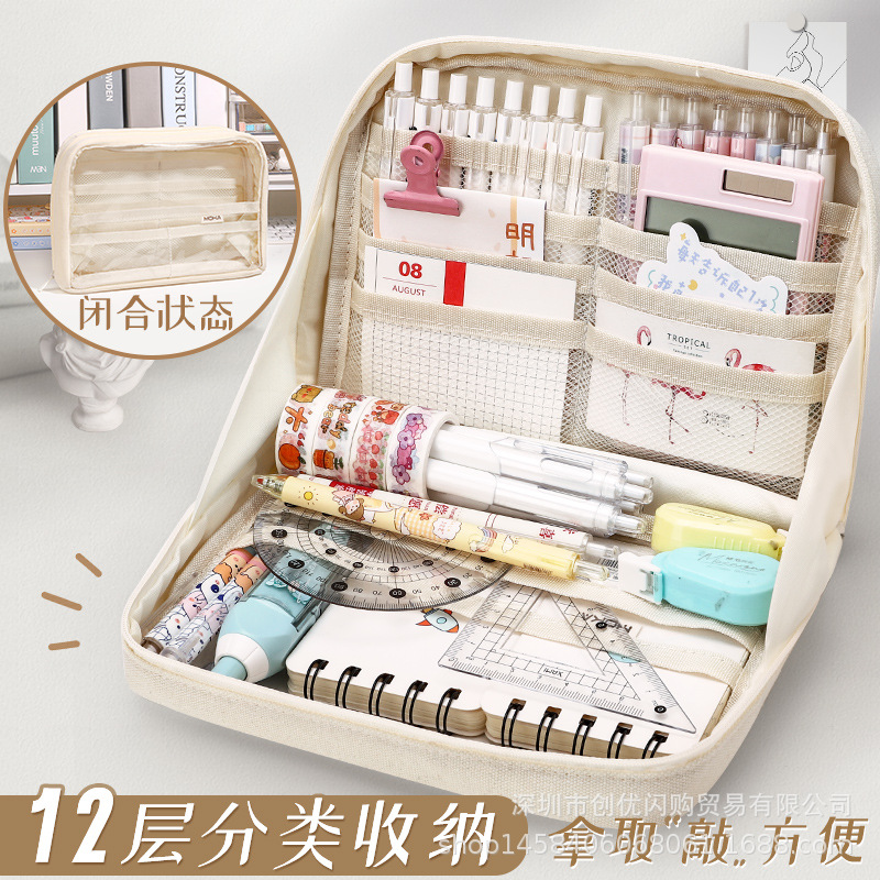 12層透明ペンバッグ大容量多層多機能透明シンプル日系文房具バッグ化粧品収納バッグ