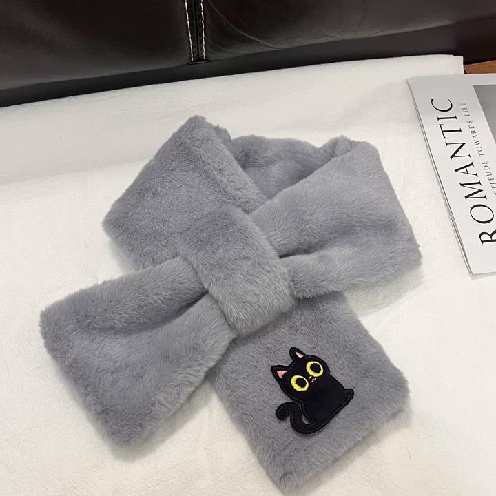 秋冬韩版保暖可爱毛毛学生围巾时尚百搭网红文艺少女短款交叉围脖