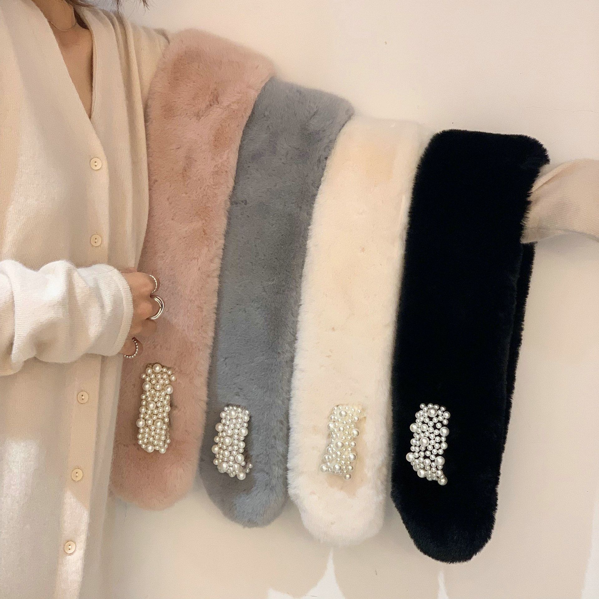 複数のファッション真珠のぬいぐるみのマフラー東門の女性ins-冬はウサギの毛の襟をまねて首を厚くします。