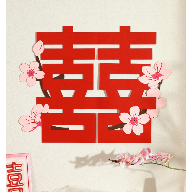 結婚式の立体喜字の置物の結婚室の配置は、新しい結婚室の寝室のリビングルームの装飾結婚用品を貼り付けます。