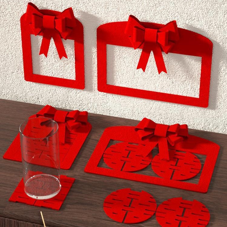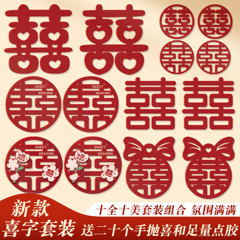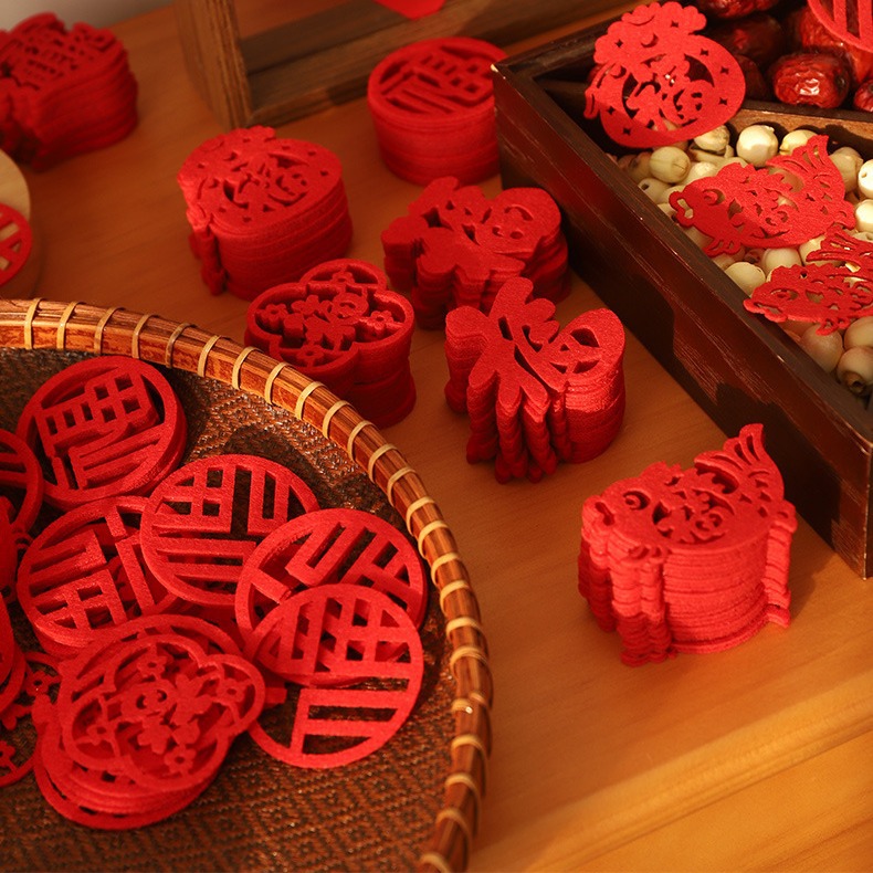 新中国式結婚祝い創意喜字不織布切り紙客間結婚室装飾配置茶杯マットお祝いセット