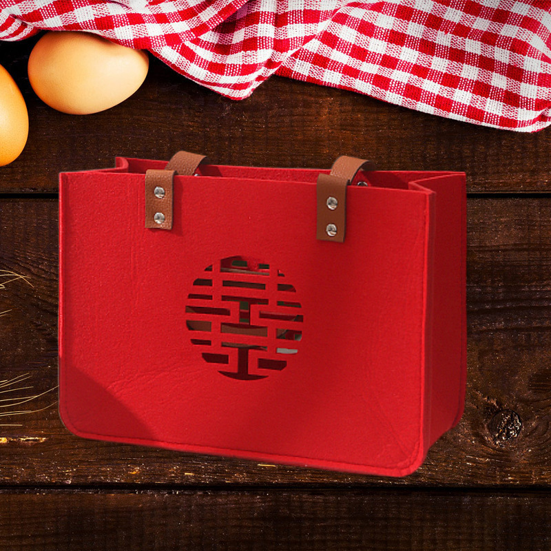 フェルトの手提げかばん喜字結婚のお土産は礼金の寿字の結婚式のお返しの飴のお土産のお金の袋を持ちます。
