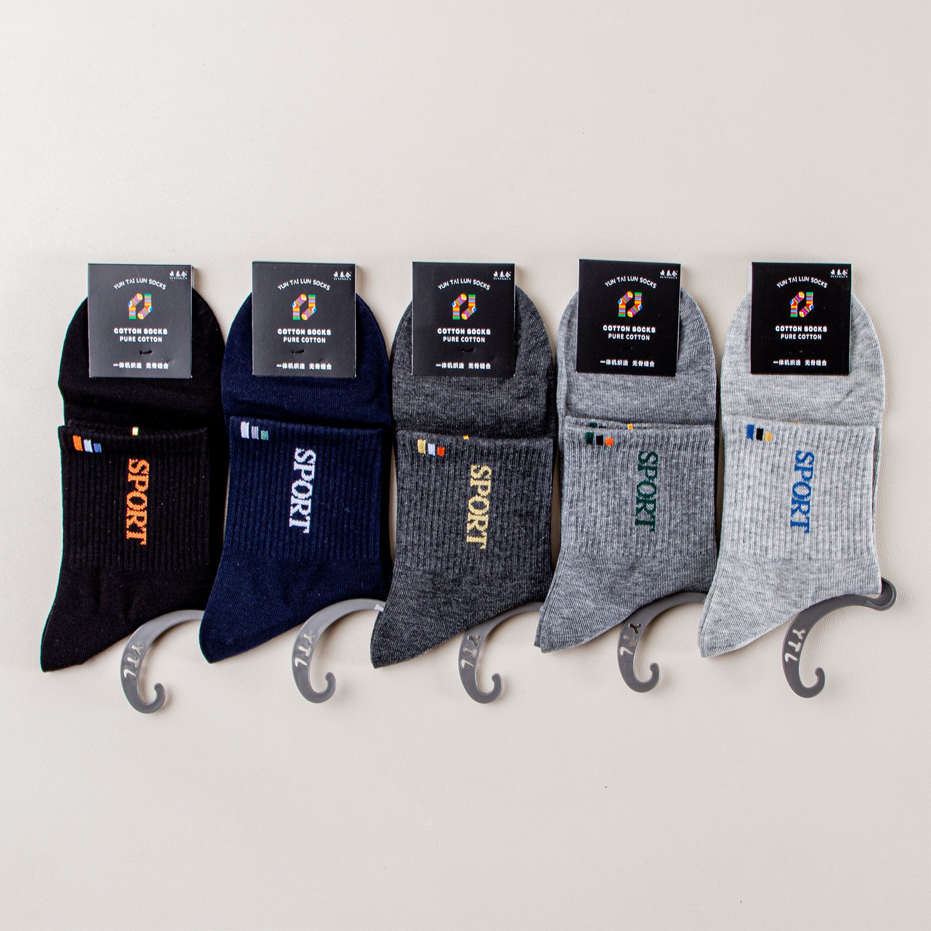 雲泰靴下2025新型春夏男潮綿靴下スポーツ靴下ファッション青年学生靴下中筒靴下卸売り